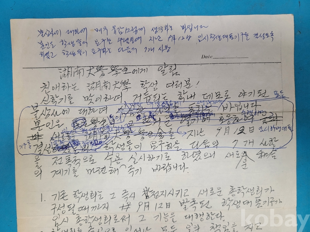민주화운동시기 湖南大學學長의 알림문 [湖南大學學生에게 알림]