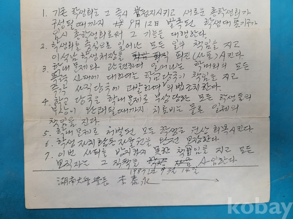 1987년9월14일자이며 모두 7개항으로 작성하였다