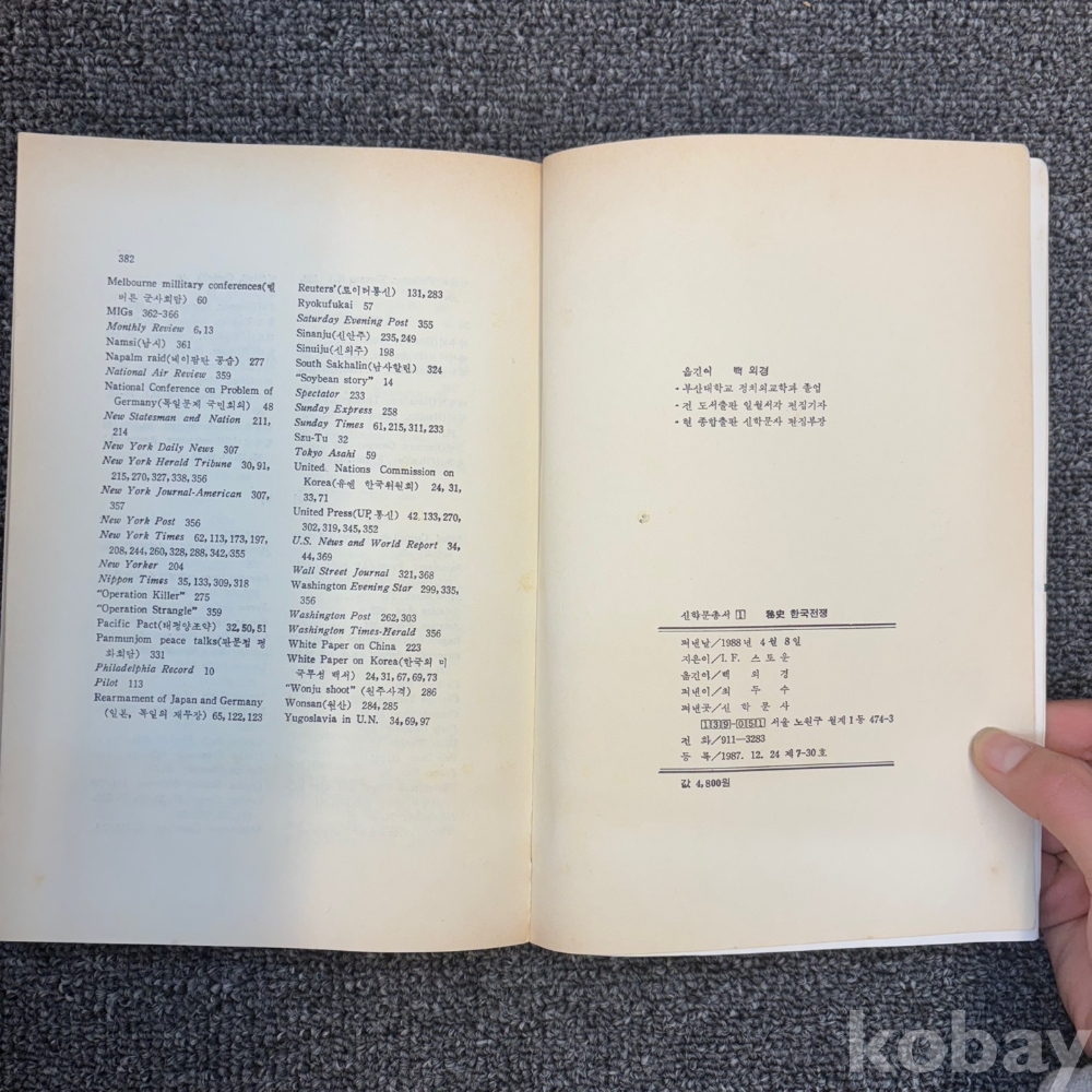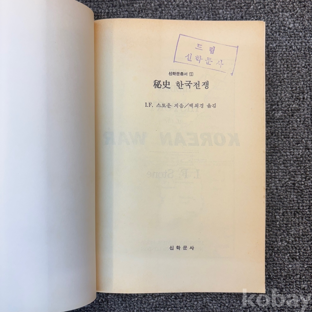 [한국현대사, 6.25, 수정주의] I.F 스토운, 백외경 옮김, <비사 한국전쟁>, 신학문사, 1988, p. 382, 상태 중급(사진참조)