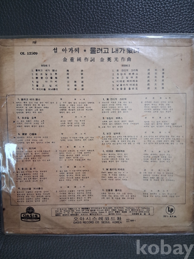 66년 오아시스에서 발매된 가수남진의 울려고 내가왔나와 송춘희의