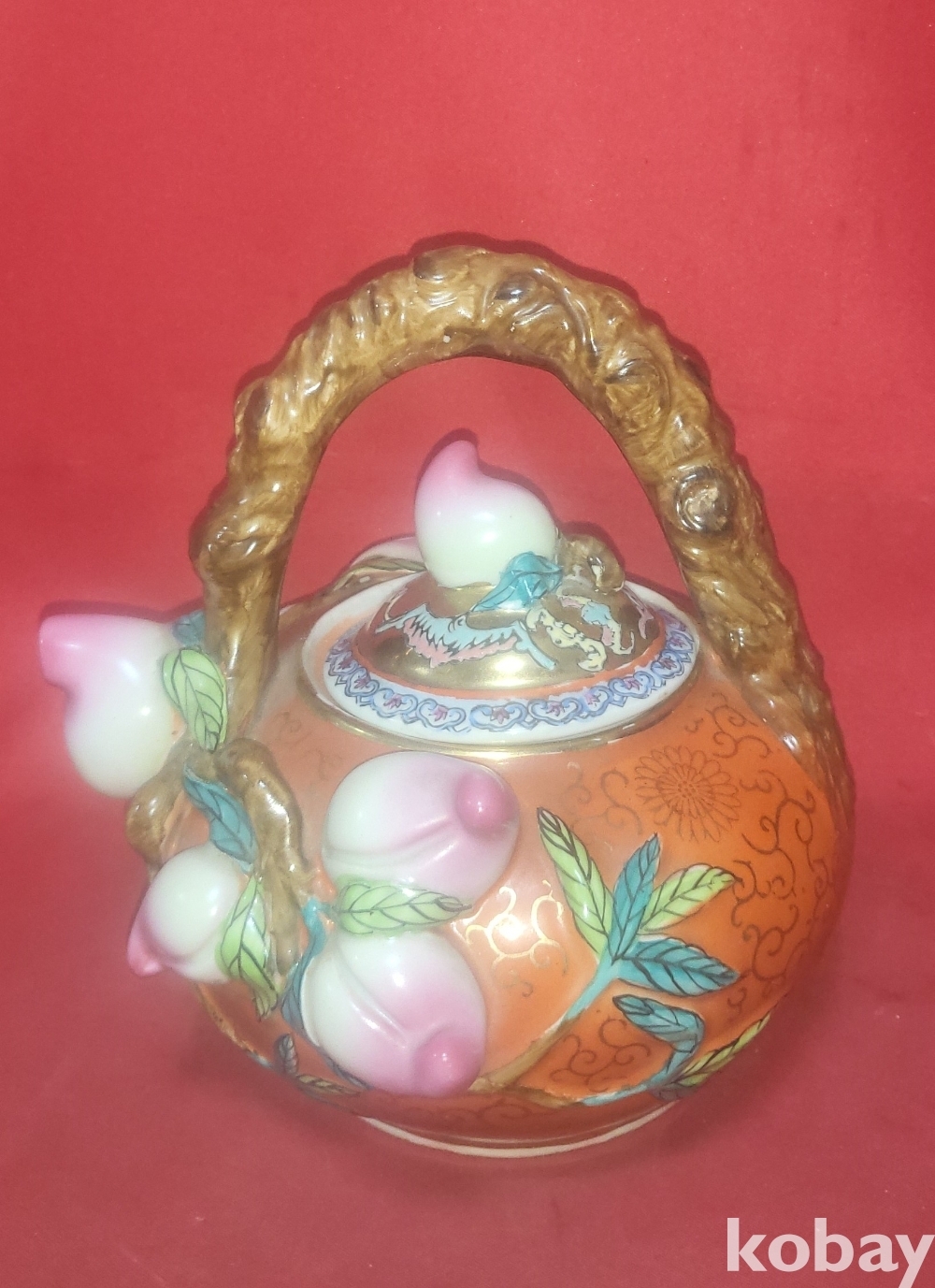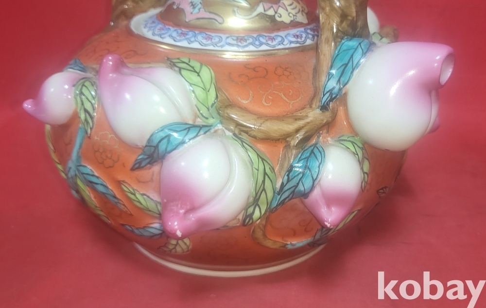 금채색에 천도 복숭아 문양 미사용 주전자입니다,