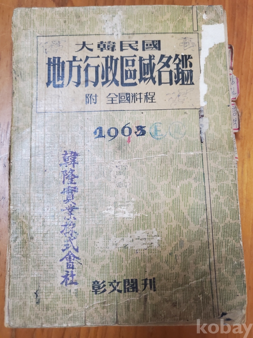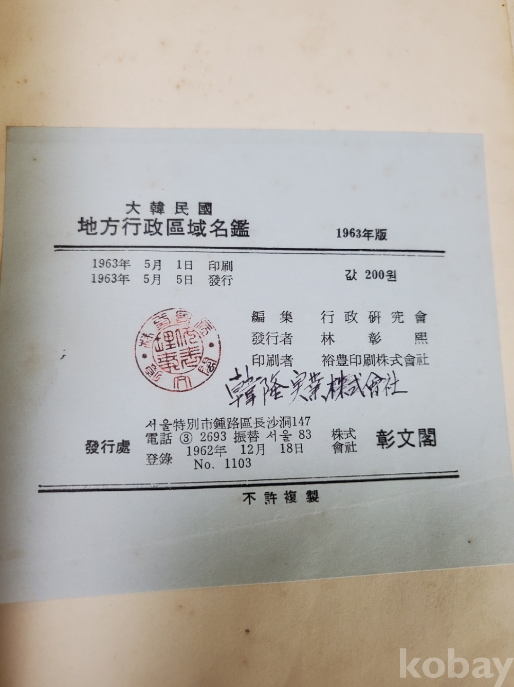 1. 대한민국 지방행정구역명감, 행정연구회, 창문각, 1963년, 295쪽, 상태 상, 사진 참조