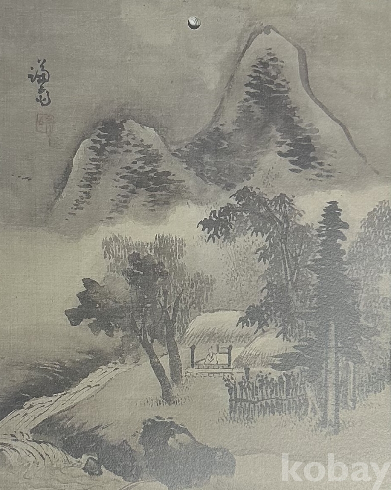 묵의 농담을 섬세하게 조절하여 안개 낀 듯한 원경과 인물 주변의 여백 처리가 조화롭습니다.