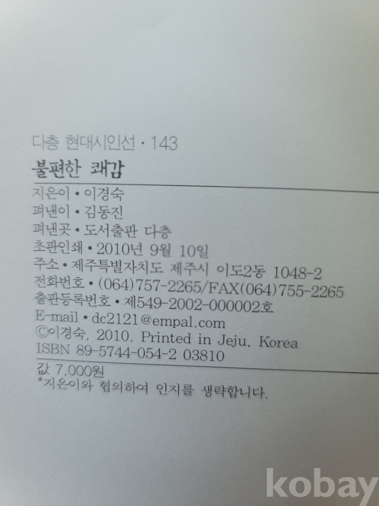 「다층」에서 '다층 현대 시인선[143]'으로 발행.