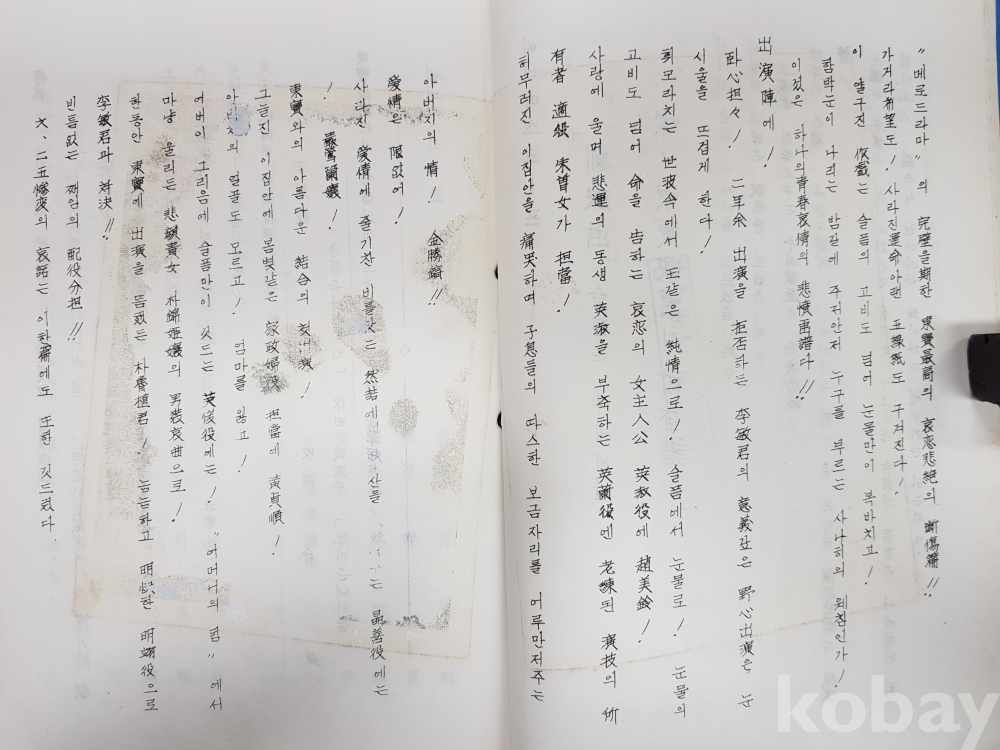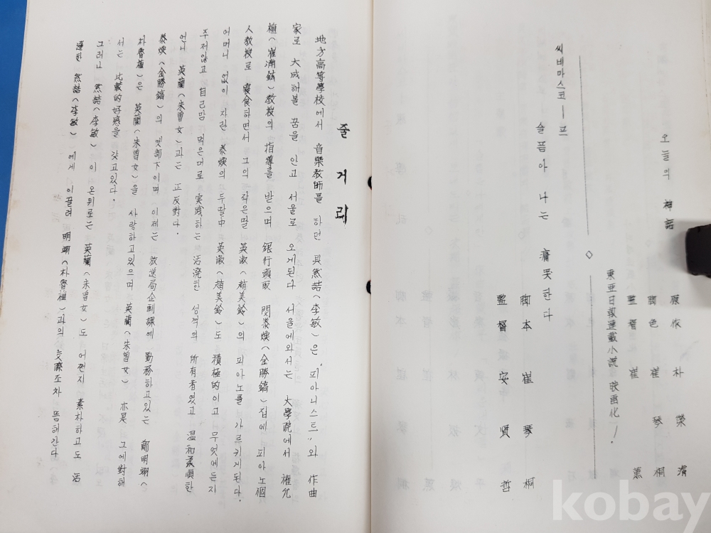 1960년대 영화 시나리오 [슬픔은 나에게만]* 동보영화사 작품, 제작 송유천, 각본 유한철, 감독 안현철