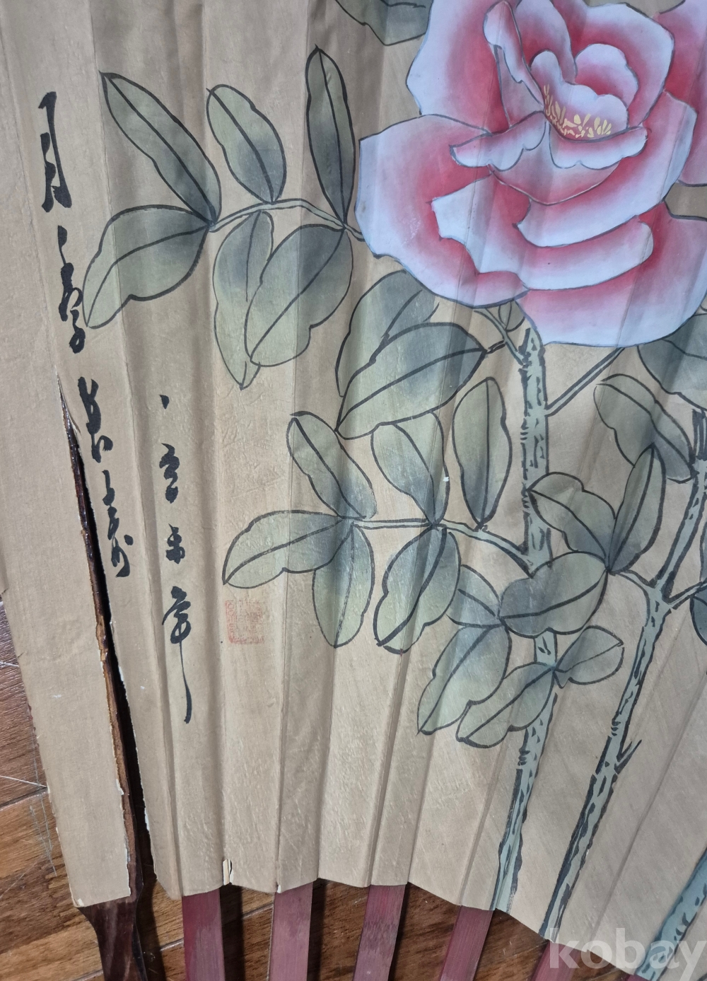 아름다운 꽃 그림 대형 부채'이오니 작품 이미지상 수결 등 두루 잘 참조하시고 가치를 아시는 분만