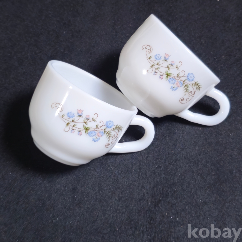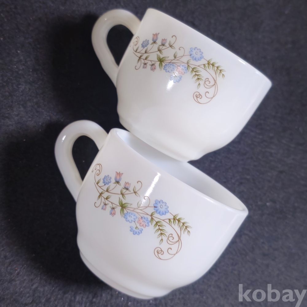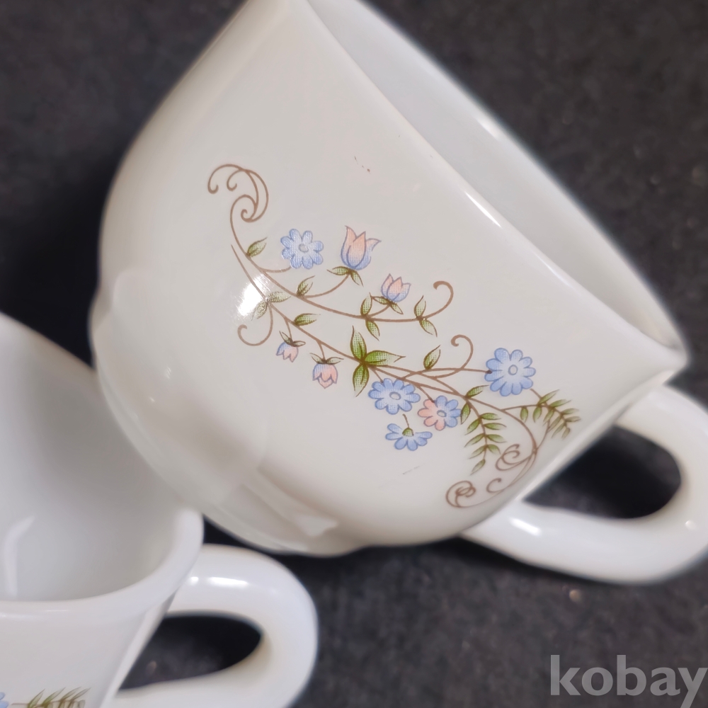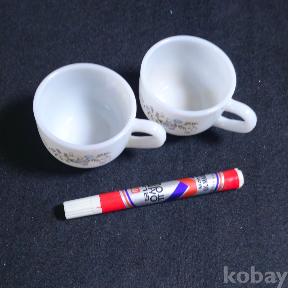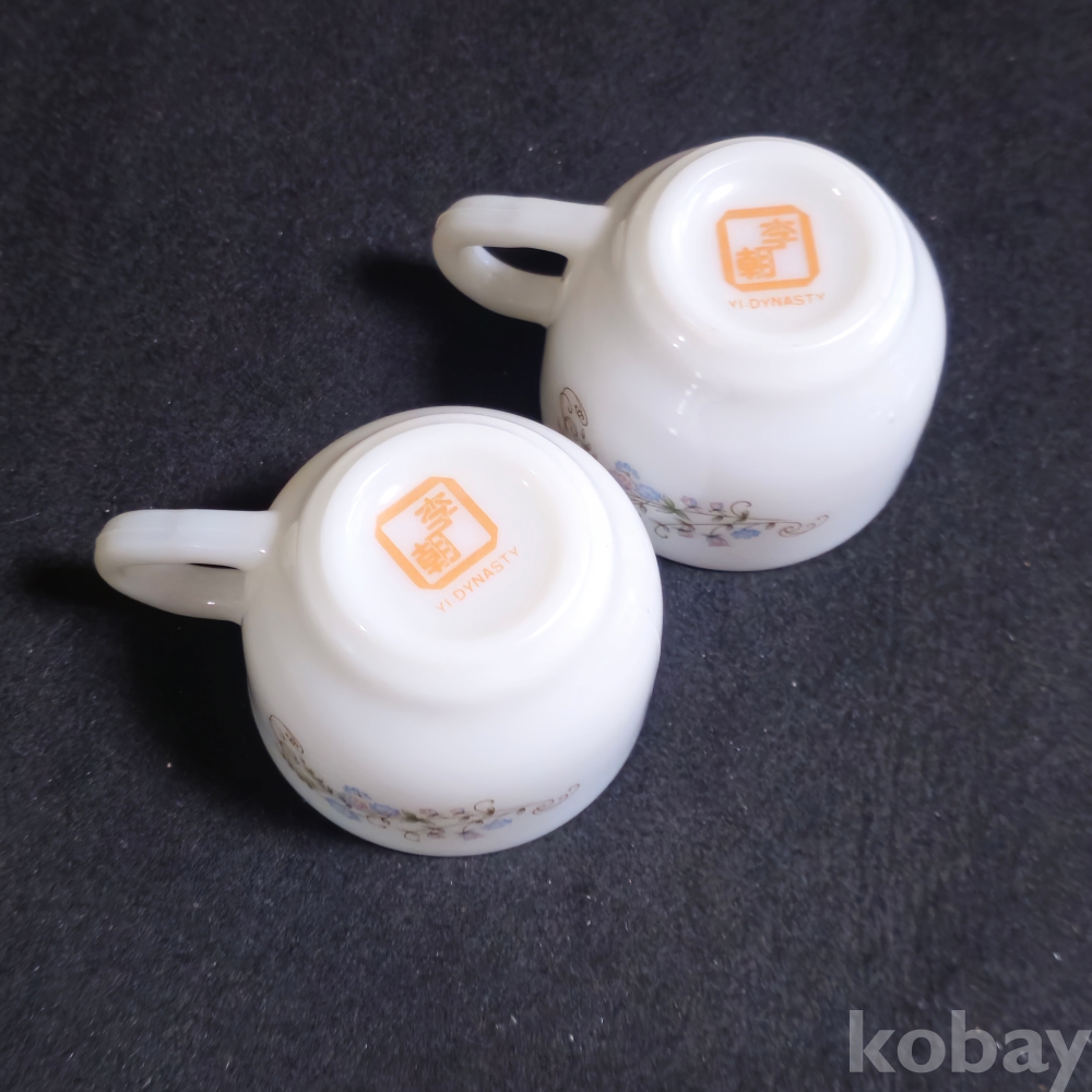 (((근현대사자료/고전커피잔))) 1980년대 꽃문양이 이쁜 커플 고전커피잔 (李朝)