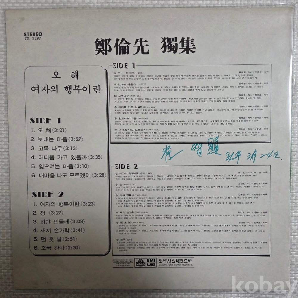 음반 : 사진참조 (스크레치 없으나 얼룩있음 )