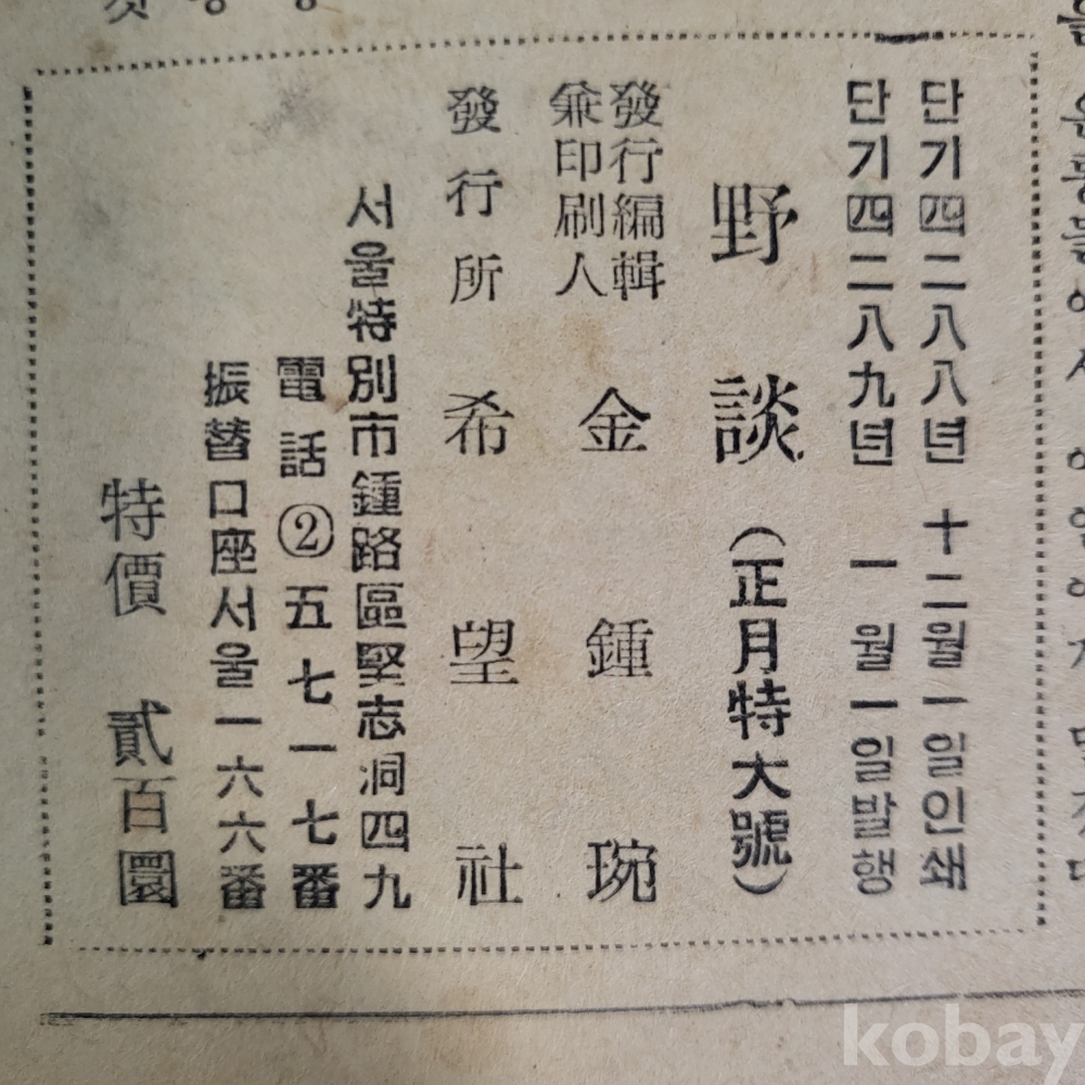 [야 담] / 4289.1.1일 발행 / 정월특대호 이며