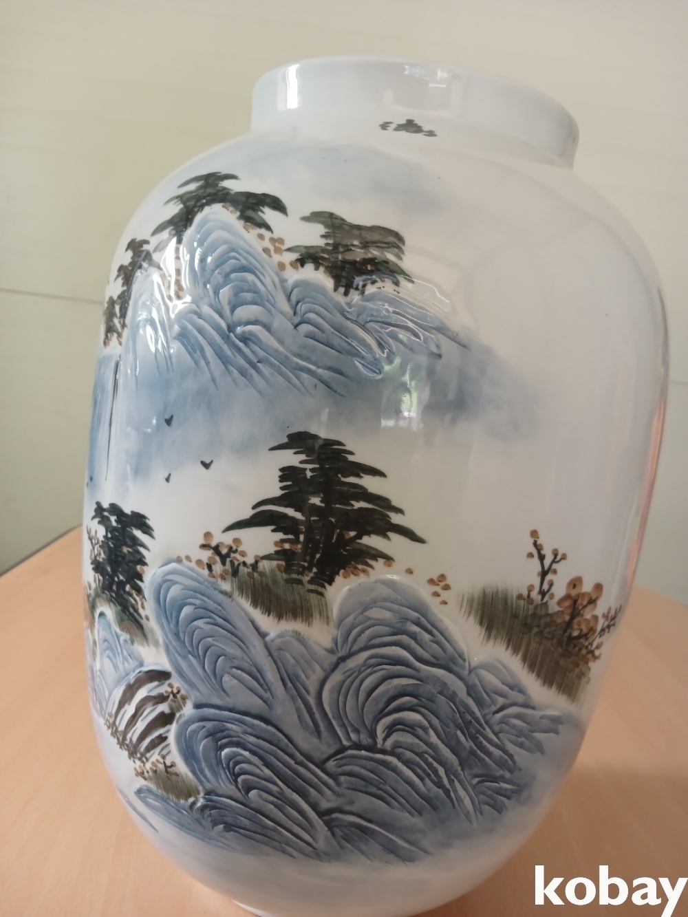 산수 풍경을 입체감 있게 표현한 대형 도자기 입니다.