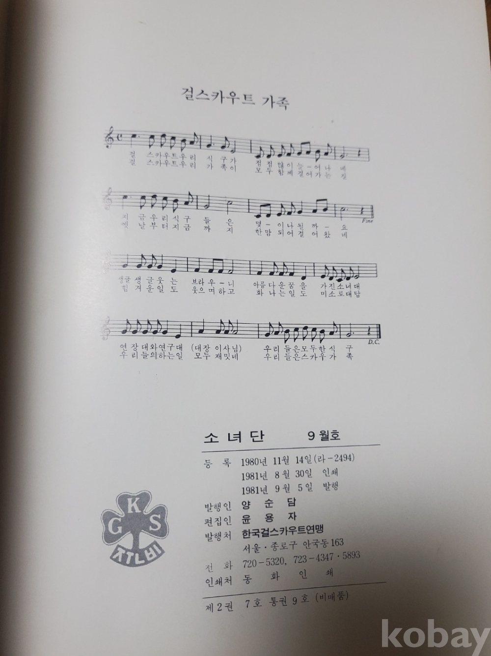 1. 소녀단 통권 9호, 한국걸스카우트연맹, 1981년, 60쪽, 비매품, 상태 상, 사진 참조