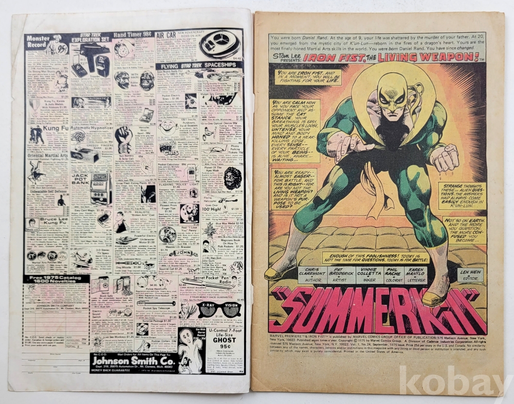 물 품 명 | MARVEL PREMIERE - IRON FIST / Vol.1 #24 Sep. 1975 / MARVEL COMICS GROUP / 미국 |