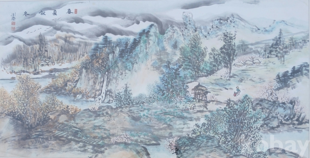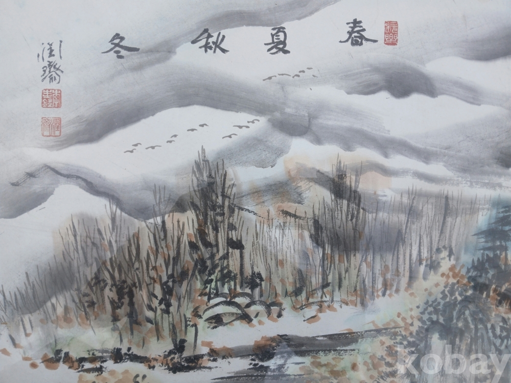 윤재 이규옥 교수님의 아주 화려한 한국화 4계절 산수 입니다.