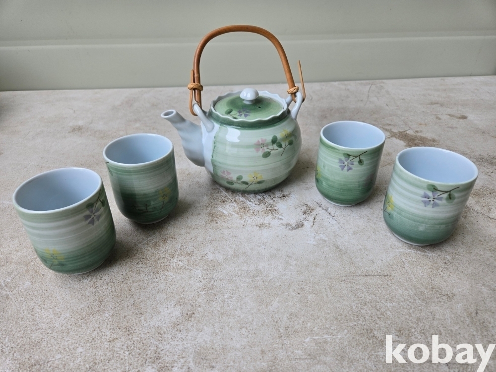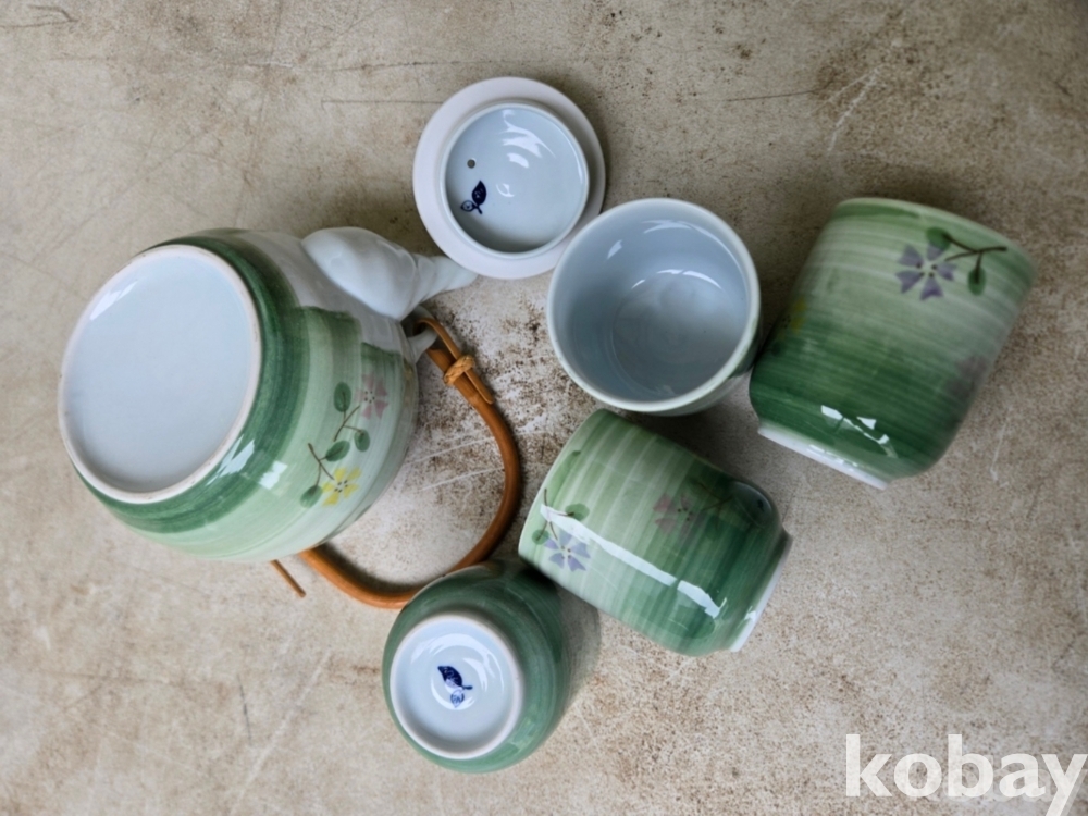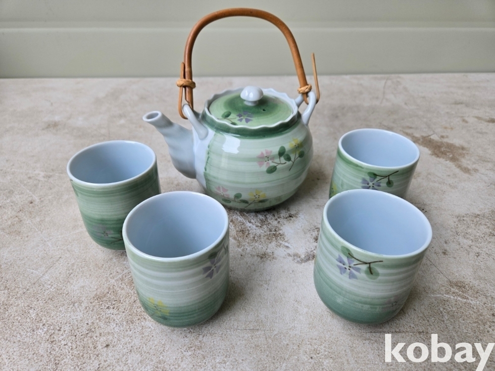 꽃 문양 다기 주전자와 잔 입니다.