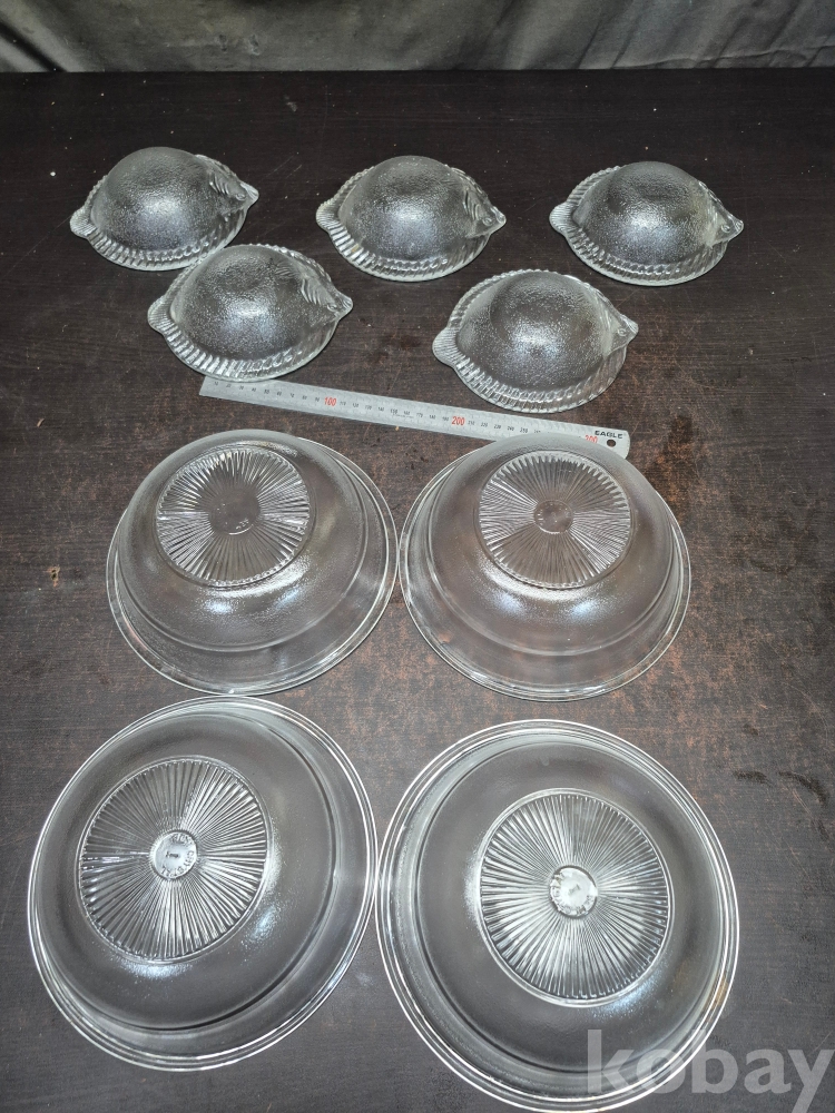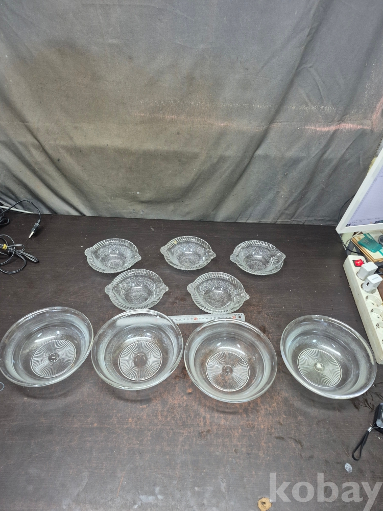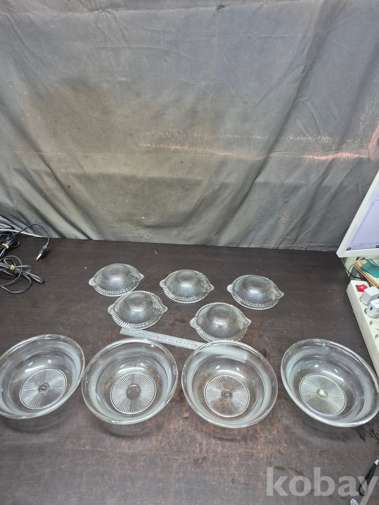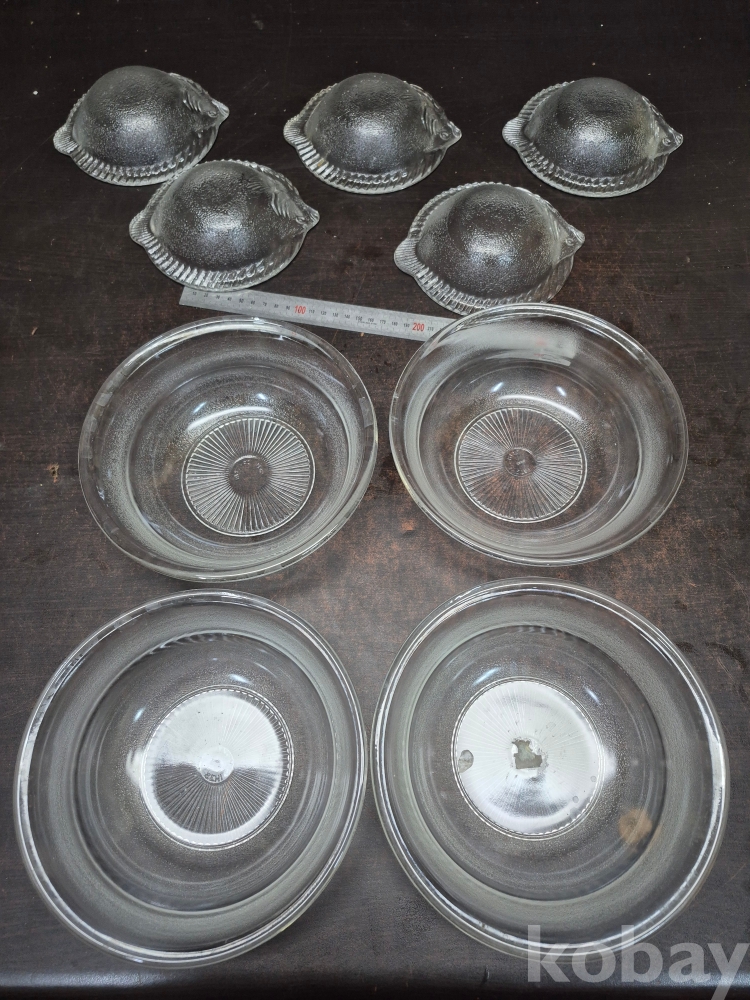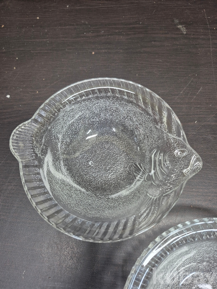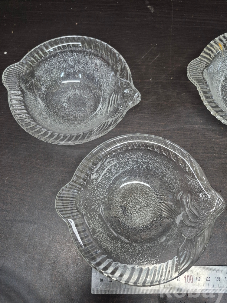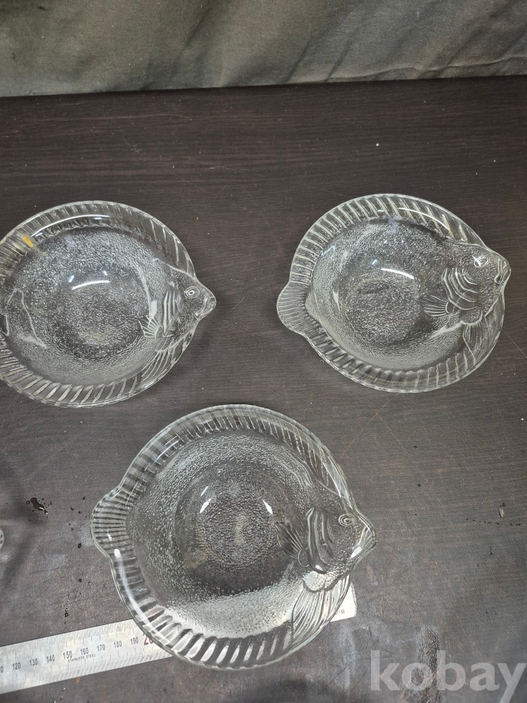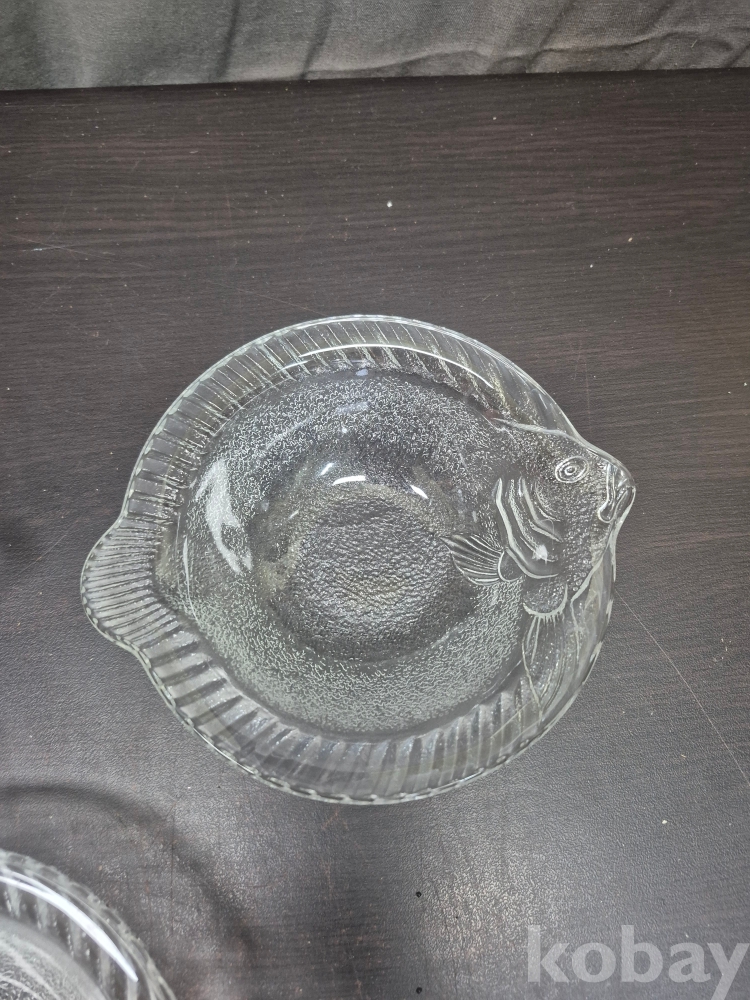 1980년대 세미 크리스탈 볼4점과 광어모양 유리크리스탈 접시 20*20*7