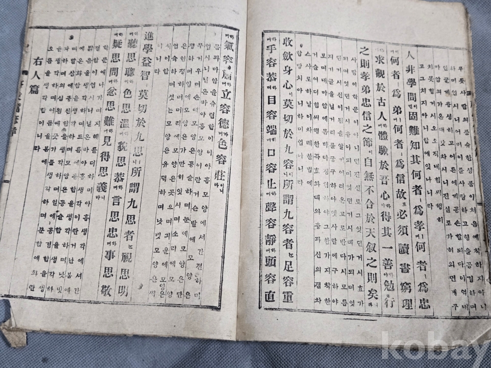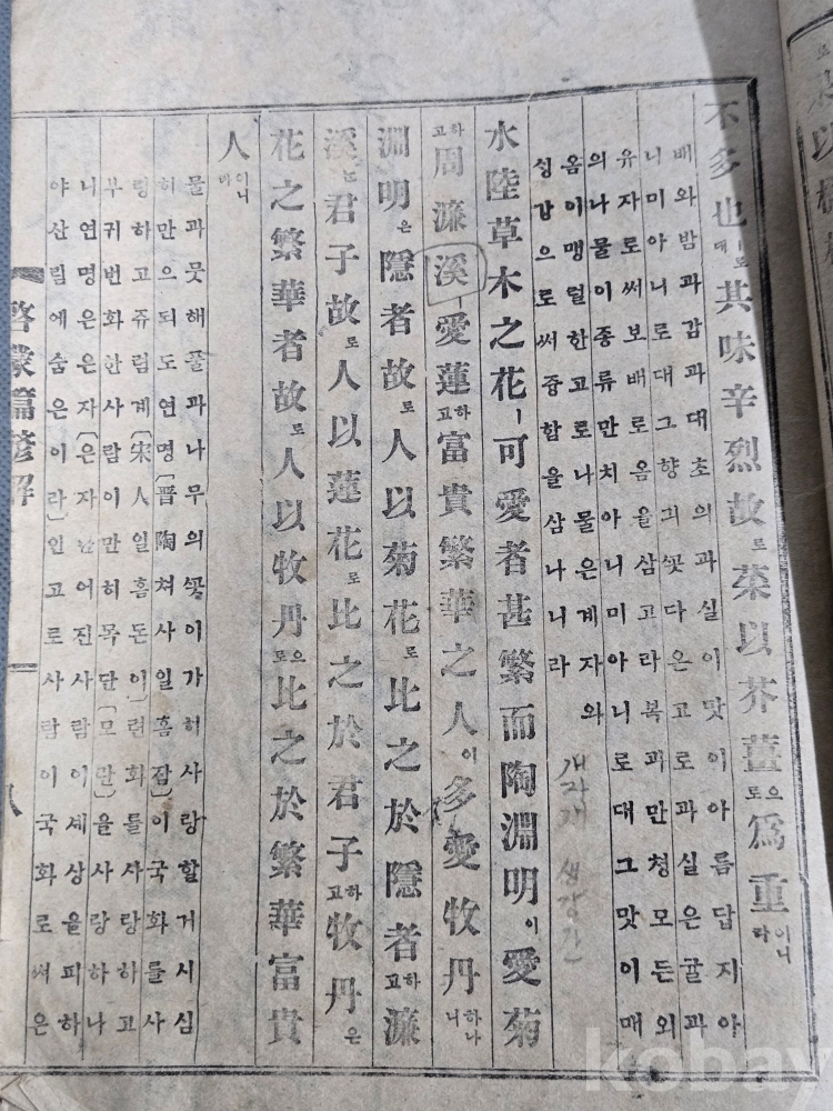 상태 == 앞장 중간부분 일부 갈라짐 있음