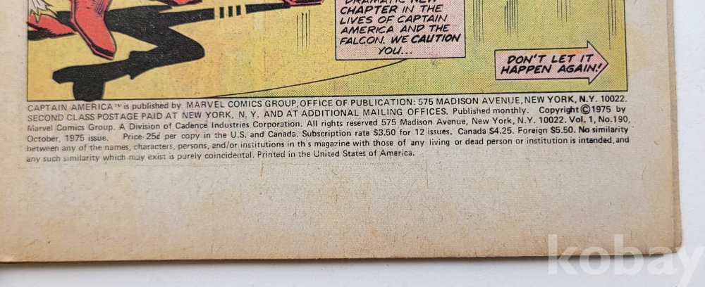 물 품 명 | CAPTAIN AMERICA & the FALCON / Vol.1 #190 Oct. 1975 / MARVEL COMICS GROUP / 미국 |