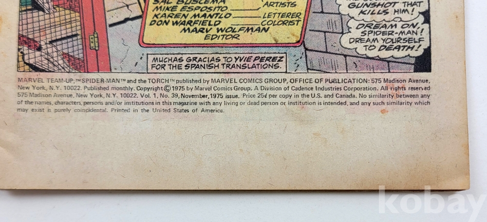 물 품 명 | SPIDER-MAN & the Human Touch / Vol.1 #39 Nov. 1975 / MARVEL COMICS GROUP / 미국 |