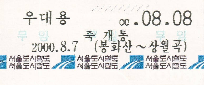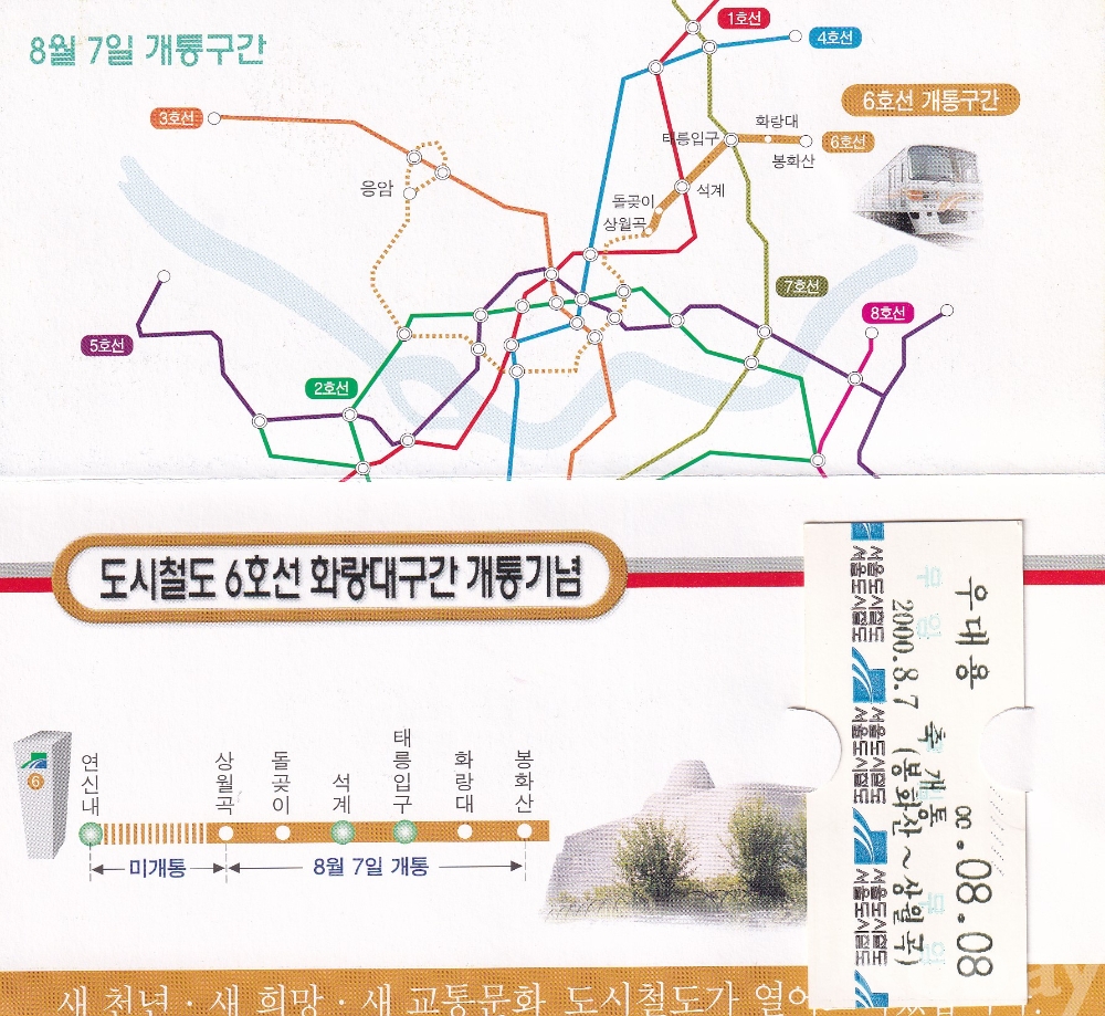 - 서울특별시 도시철도공사 - 2000년 8월 7일 도시철도 6호선 화랑대구간 개통기념 승차권