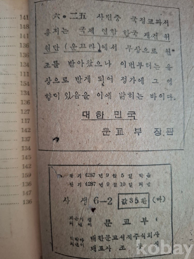 국민학교 교과서----우리나라의 발달 6학년 2학기 (1954년 발행)----양호합니다