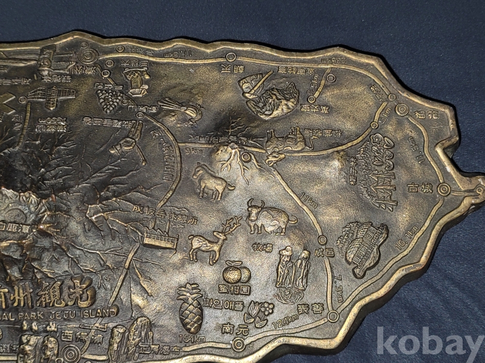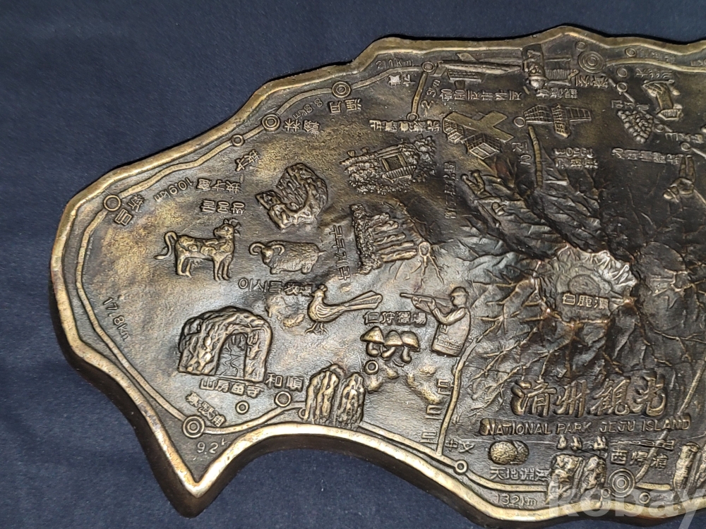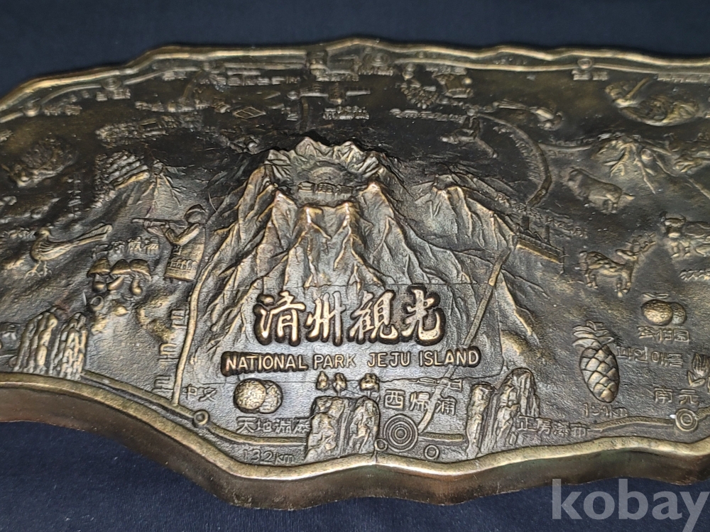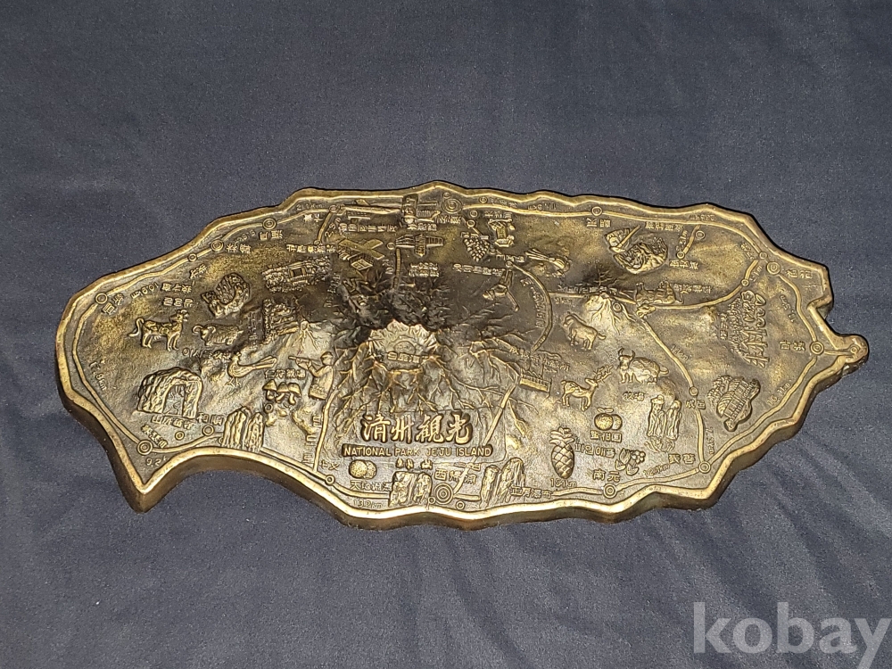 빈티지 세월 감이 느껴지는 제주 관광 기념 재떨이나 함으로 사용하기 좋은 제주도 모양 장식입니다.
