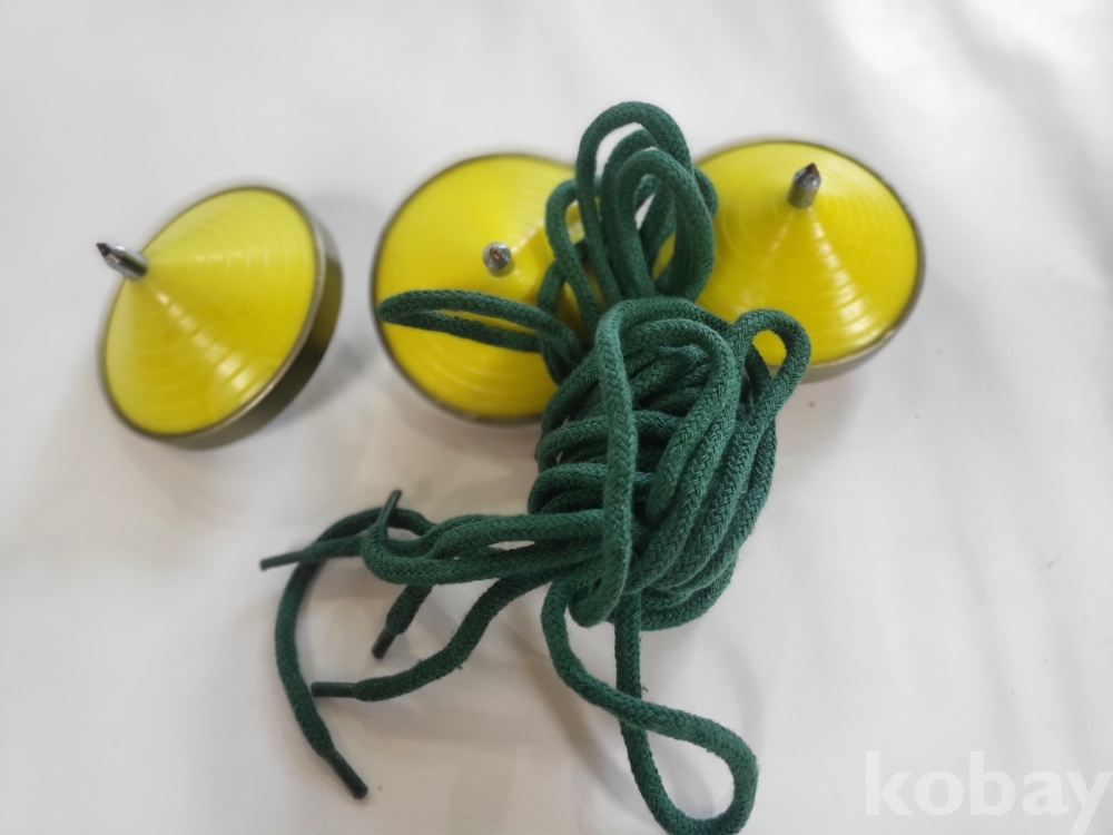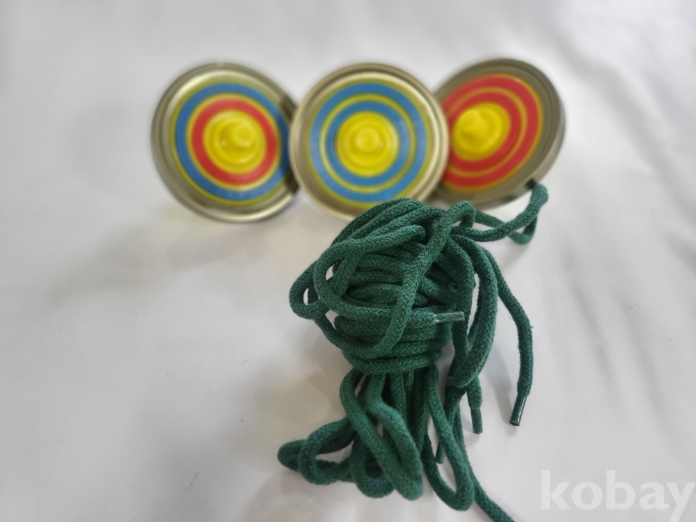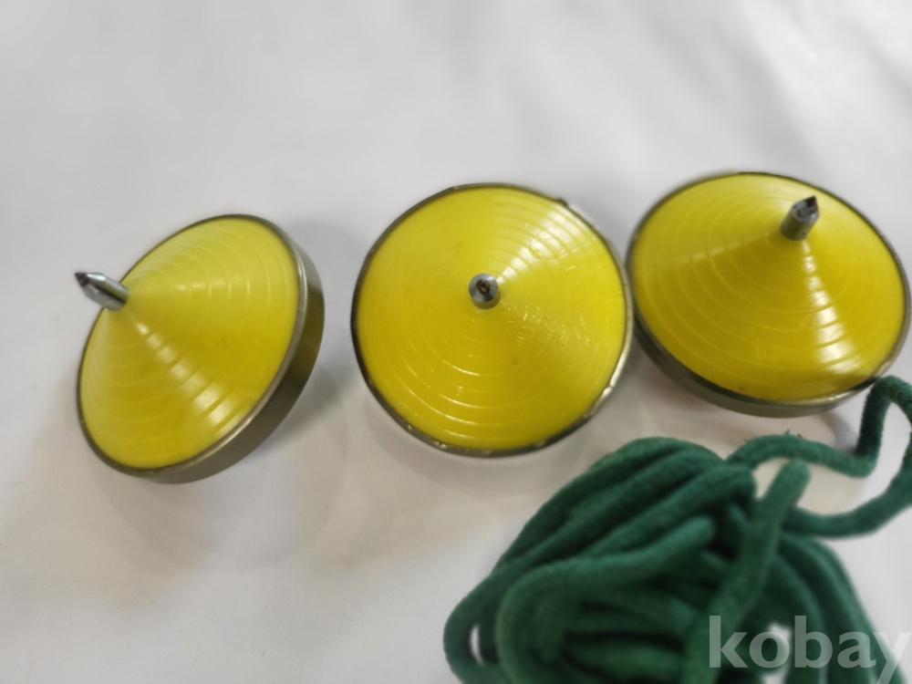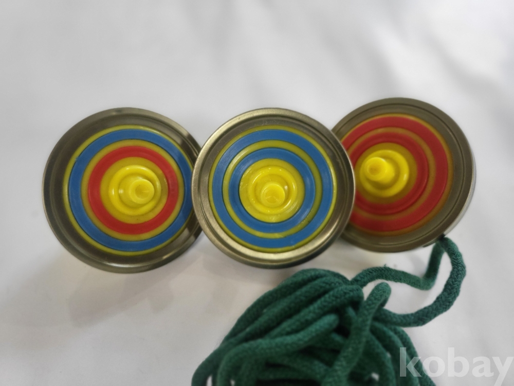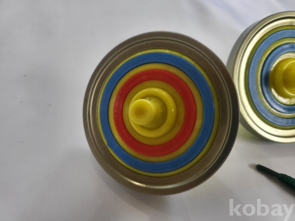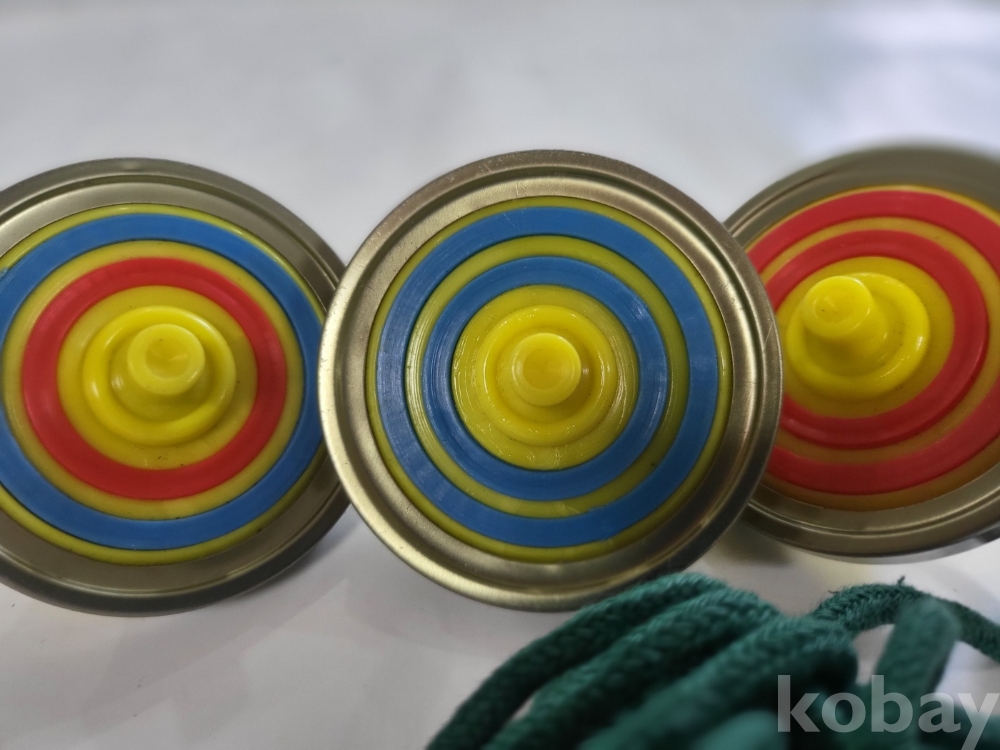 추억의 국산 오리지날 양철 팽이 미사용 새제품 3개 (팽이끈 포함) 일괄 입니다