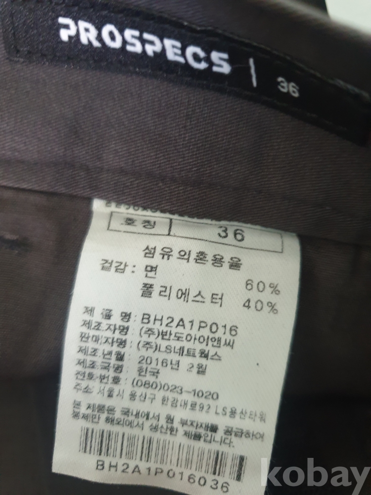 [천원경매] 10-395 프로스펙스 남성용 면혼방 바지(짙은 회색, 미착용 제품, 허리 36인치, 길이 112cm)