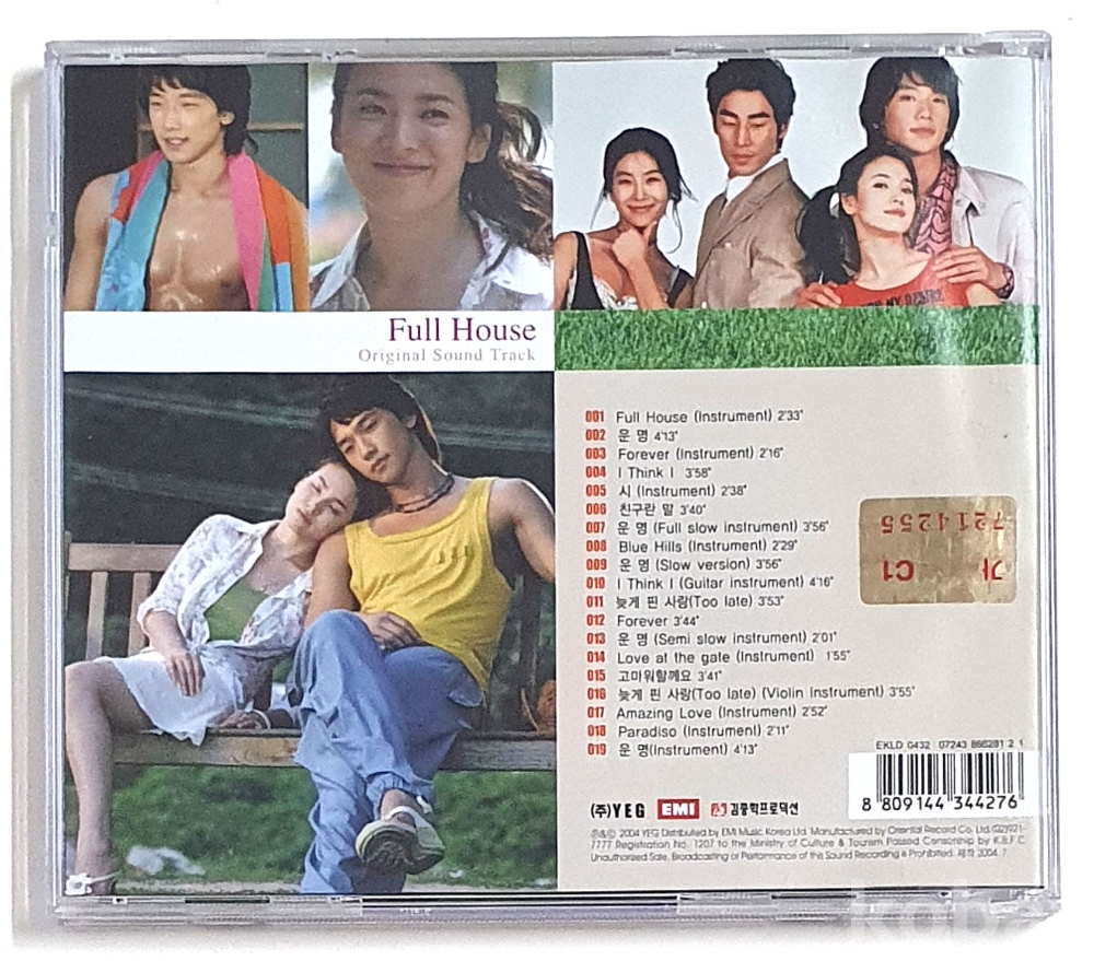 물 품 명 | KBS 드라마 ' 풀하우스 ' OST 정지훈 송혜교 주연 / 메인 테마곡 운명 , 처음 그 자리에 , I Think I / 2004년 |