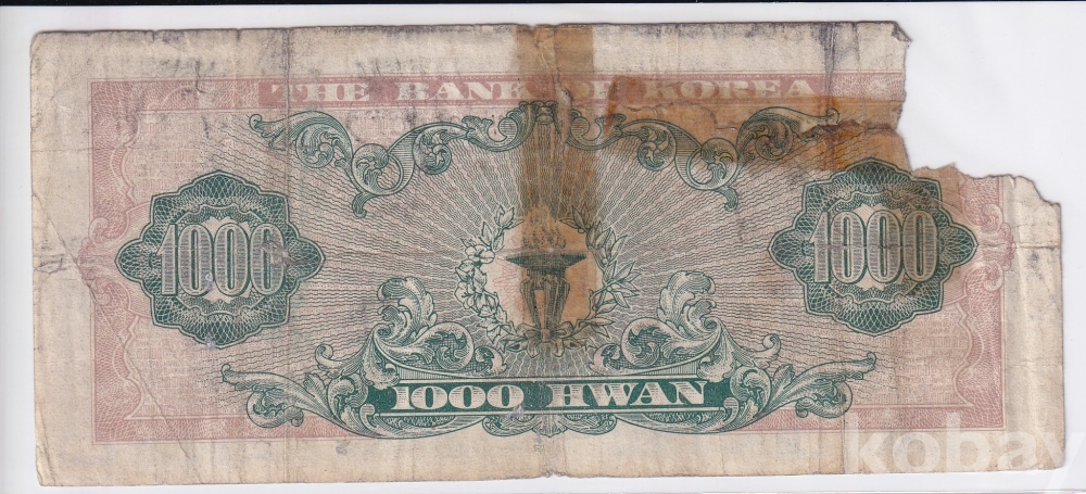 - 한국은행 4294년(1961년) 세종대왕 개 1,000환 판번호 73번 사용제 지폐 입니다.