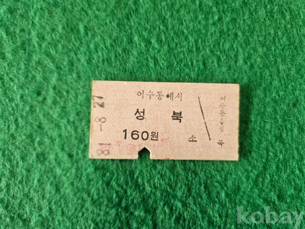 - 전철승차권 " 어수동에서 성북 " (160원 소)
