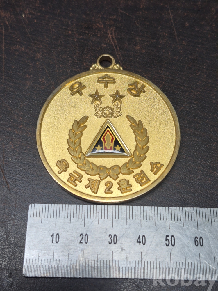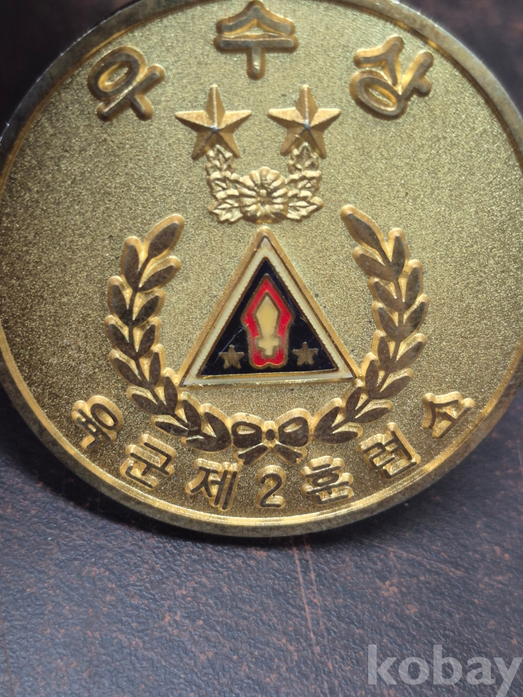 육군제 2훈련소 우수상 메달 육군제 2훈련소장 정화언 5.5*5.5*0.5