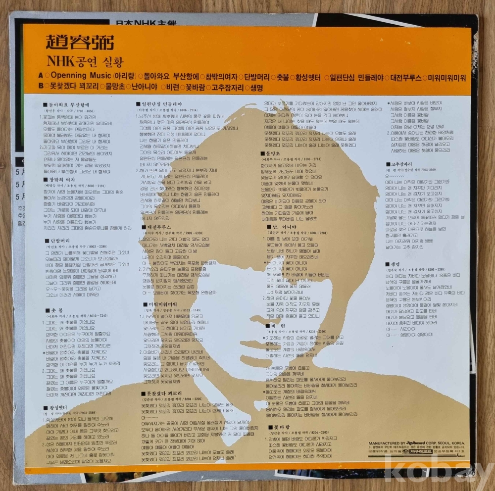 음반: A 뒷면 약한 연흔 및 얼룩(웨터마크)존재하나 NM에 가까울 정도로 매우 우수함