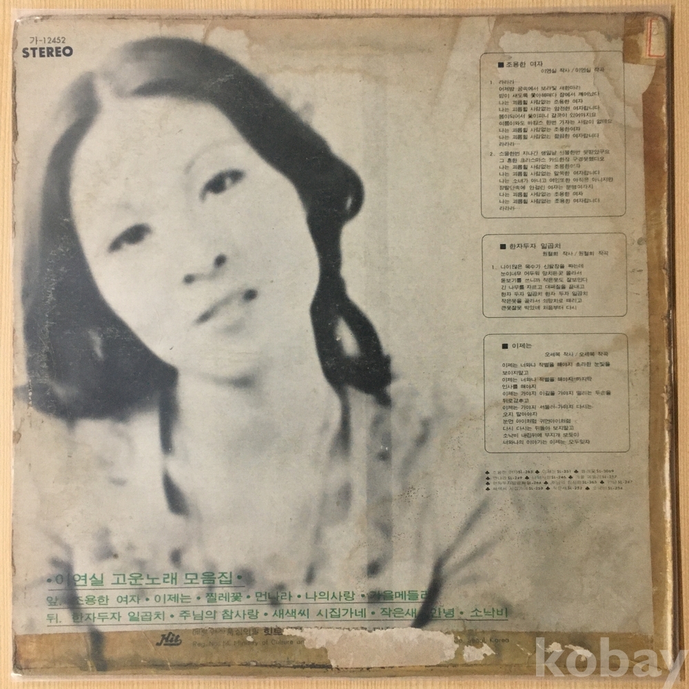 . 가요음반 대부분은 휘어짐이나 손상을 방지하기 위해 무지싱글자킷을 하나 더 사용하여 보관되었던 음반들입니다.