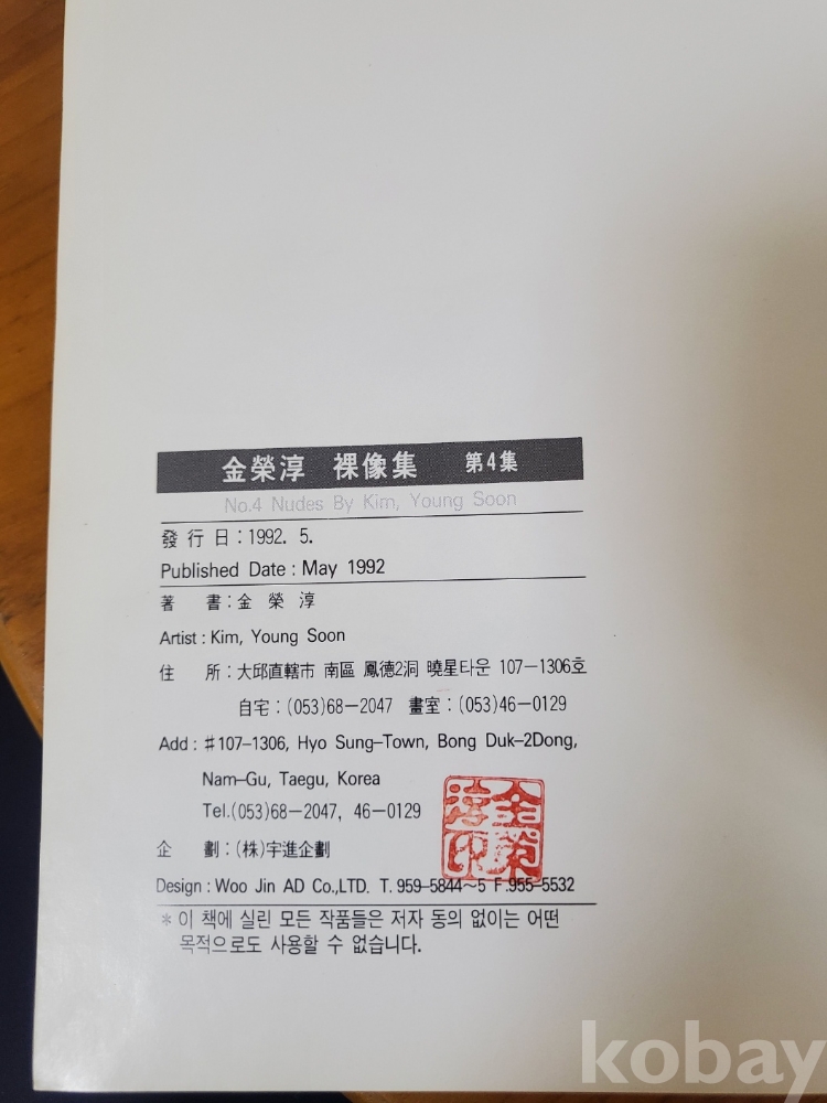 1. 김영순 나상집(목판화) 제4집, 1992년, 두 군데 서명(증정본, 저자 서명본), 상태 상, 사진 참조