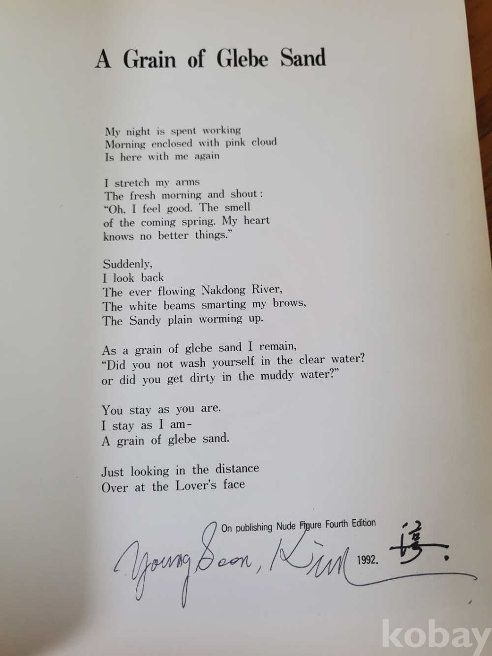 3. 서명본 : ‘흙 모래알 하날’이란 시 밑에 영어로 자필 서명 있음