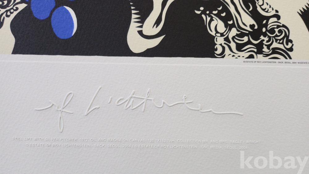 로이 리히텐슈타인 " 은 주전자가 있는 정물" 1972년 作 특수 압인 판화입니다,