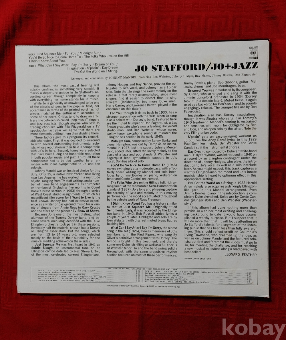 Jo Stafford 앨범입니다 / 트랙은 별도로 제공합니다 / Nm+