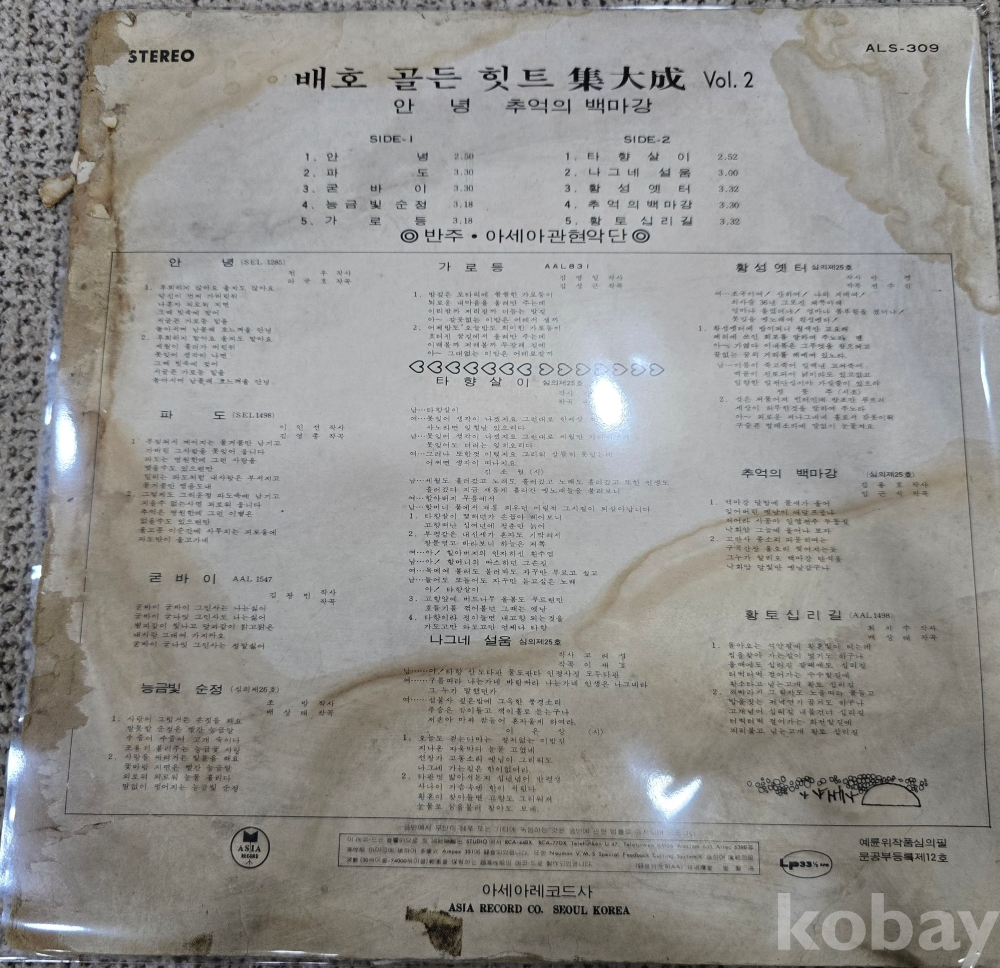 (초희귀품) LP 가요/배호 골든힛트집대성 2집 -파도