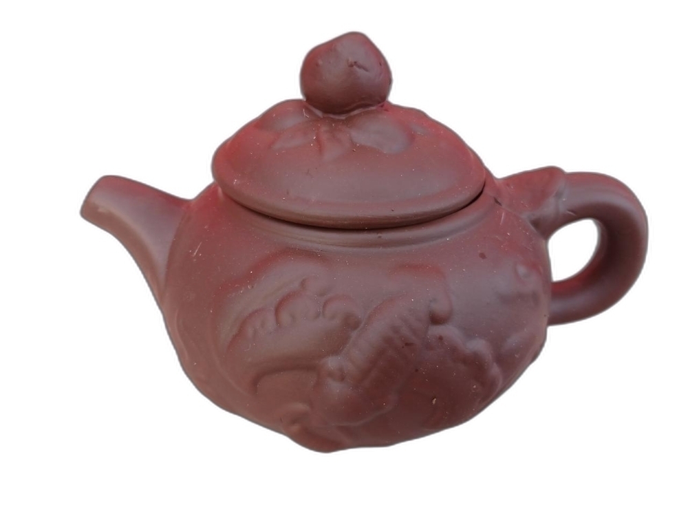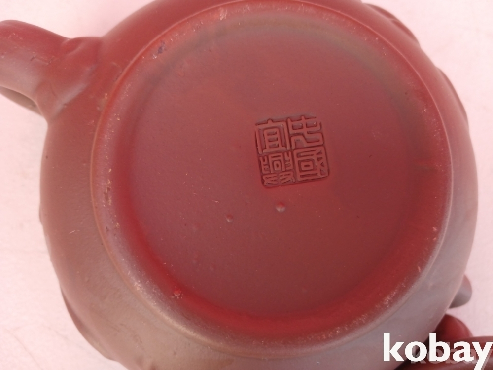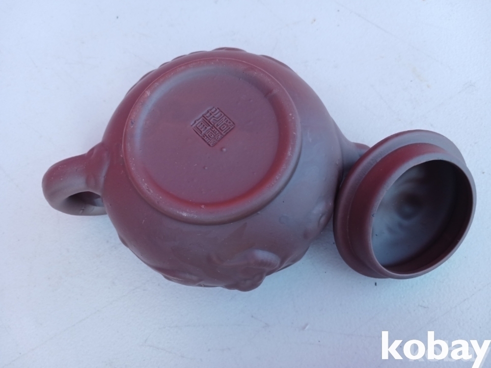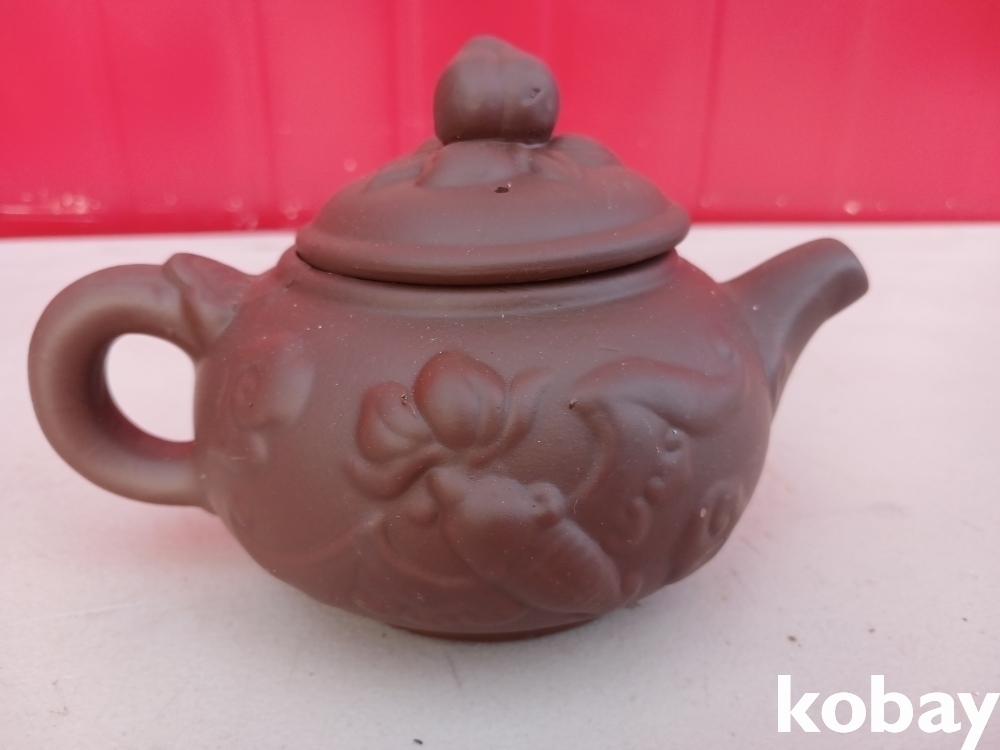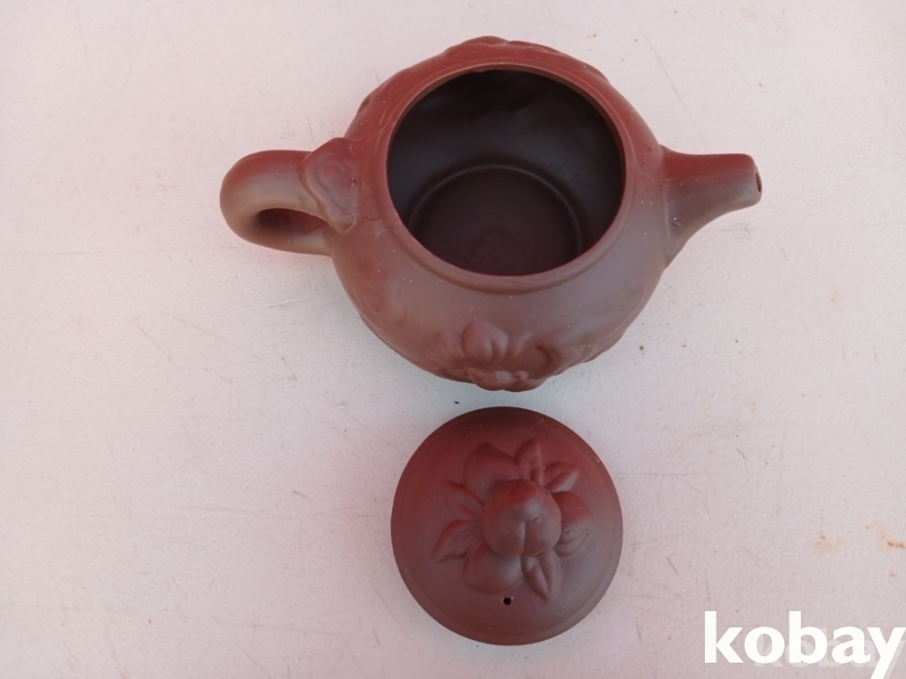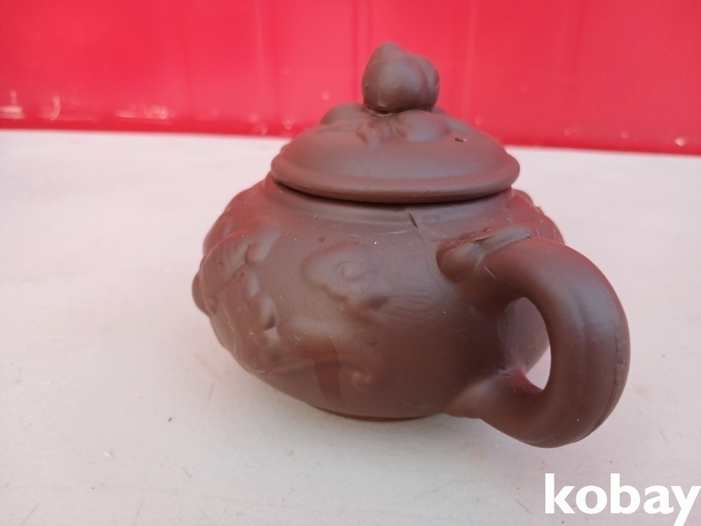 복숭아 모양의 손잡이가 있는 자사 주전자 입니다.