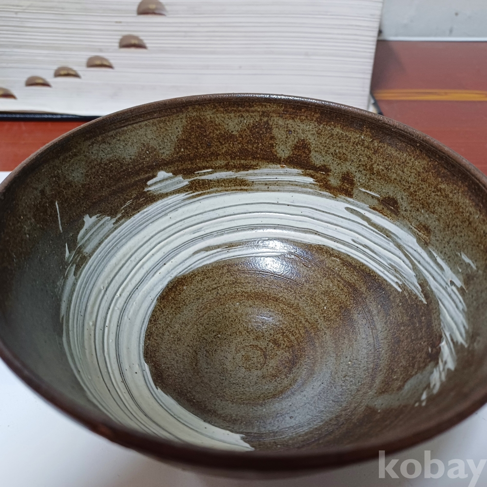 내면에 백토가 시원스럽게 시문된 다완입니다.