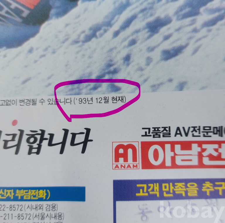 1993년에 아남전자 제품 카다록입니다