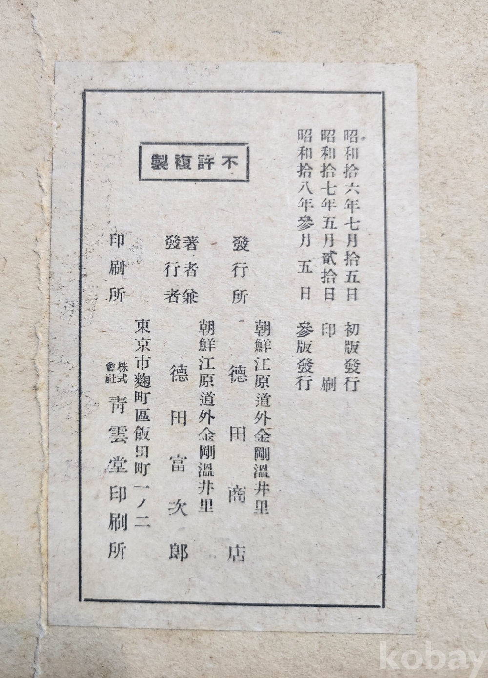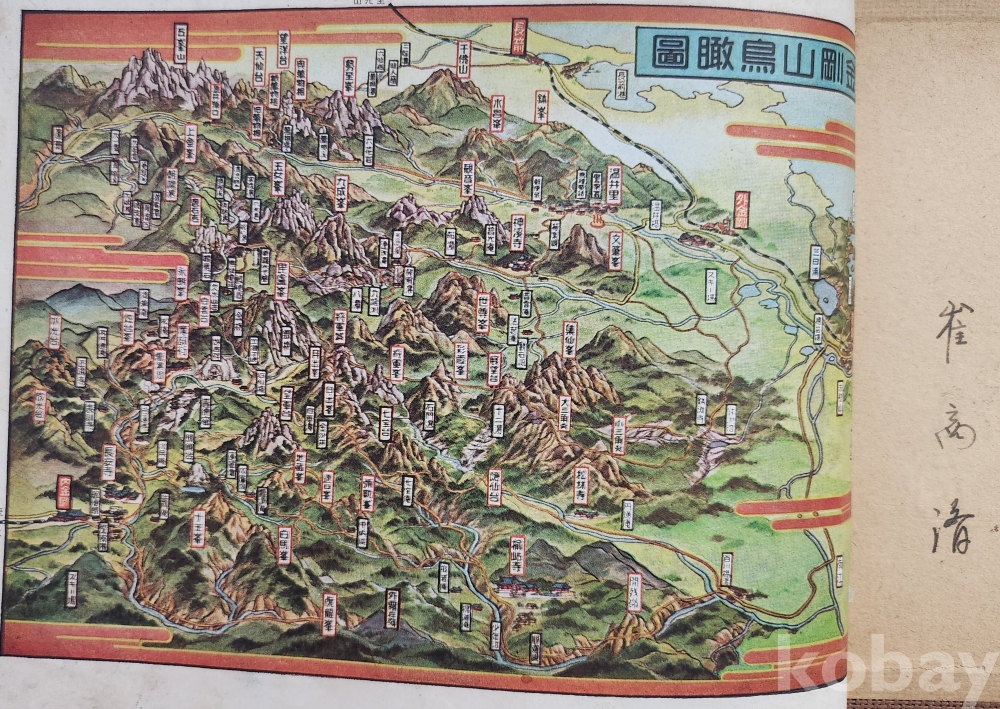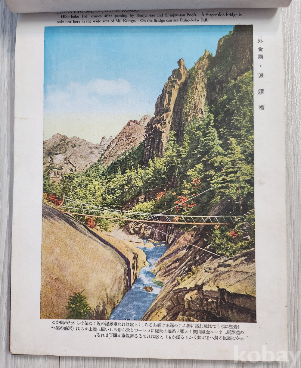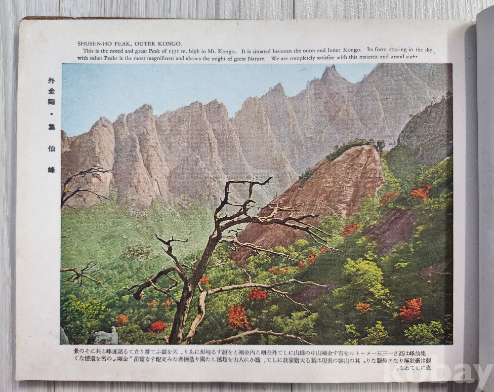 소화18년 1943년 조선 금강산화보 입니다 아름다운 내금강산 외금강산 칼라 사진 42장이실려 있습니다 첫장에 금강산 조감도가 그려져 있습니다 깨끗하고 낙장 파본없이 양호 합니다