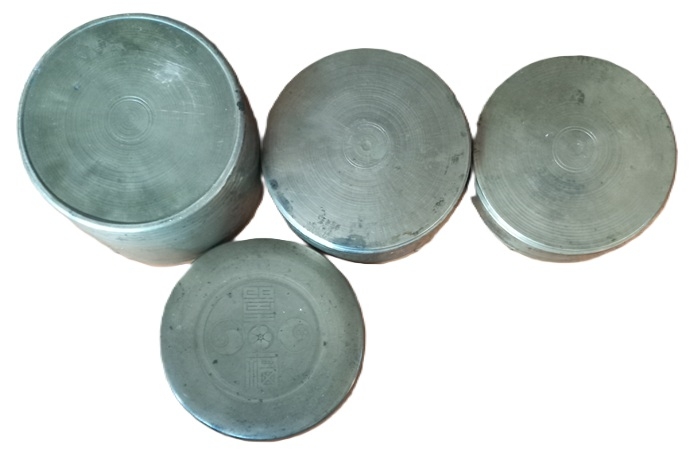 갈수록 높이가 약간씩 작아지고. 한편 각 통들의 뒤쪽 바닥에는 각각 밑줄의 파인 동심원이 있고. 물론 찬합/기가 아닌