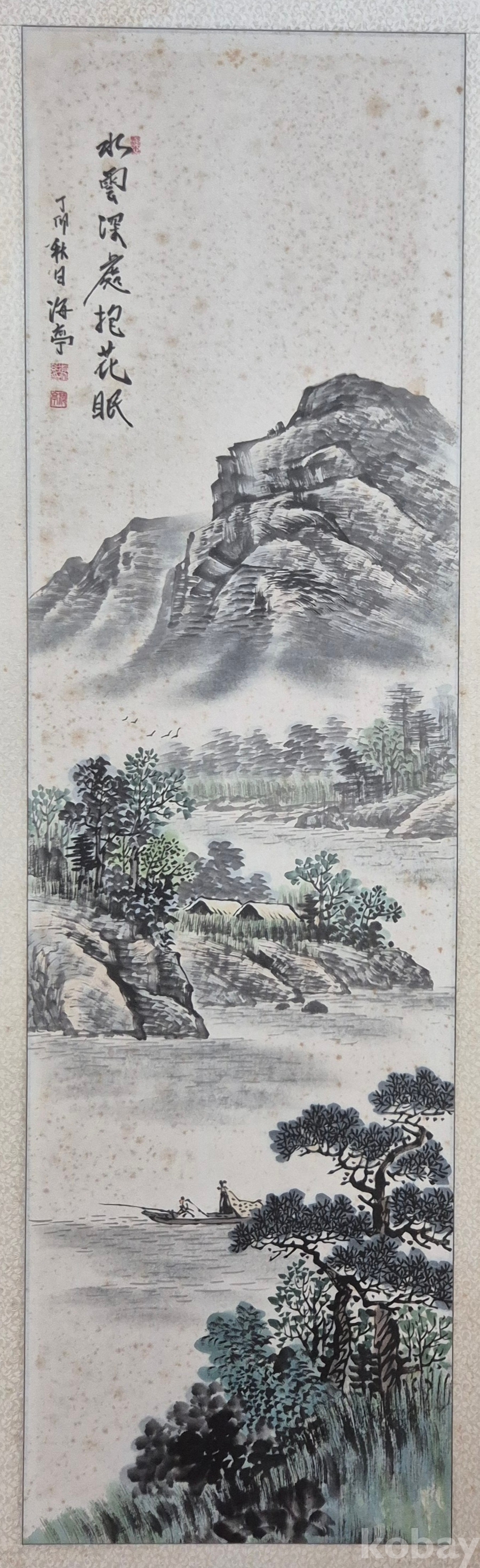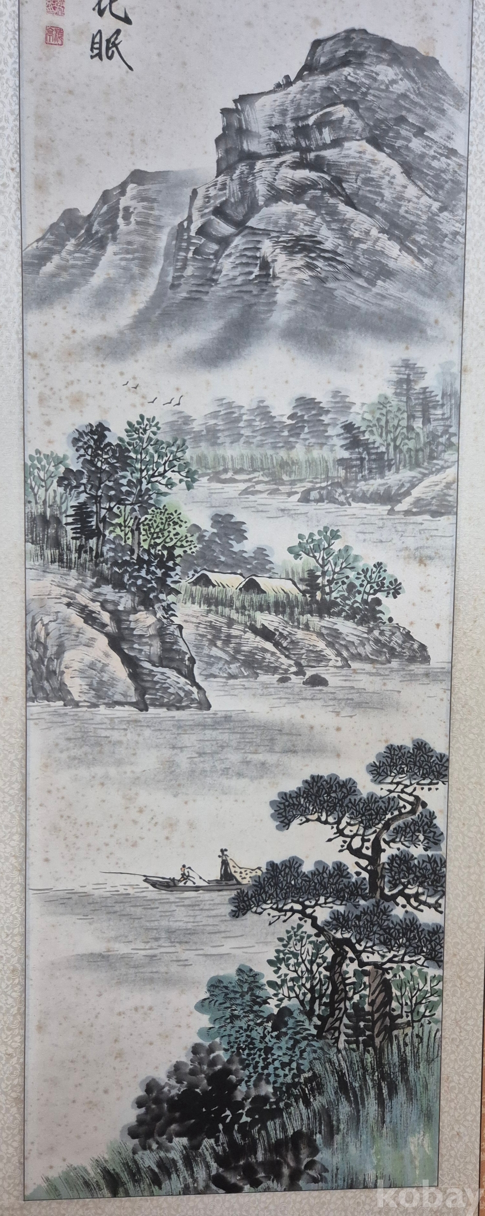 작품성 좋은 시원스럽게 잘 그려진 춘경 산수화'이오니 작품 이미지상 수결 및 낙관'등 두루 잘 참조하시고