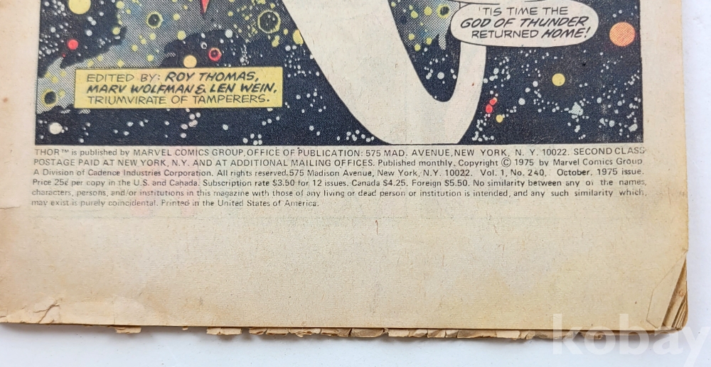 물 품 명 | the Mighty THOR / Vol.1 #240 Oct. 1975 / MARVEL COMICS GROUP / 미국 |