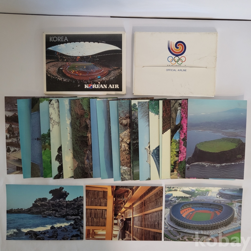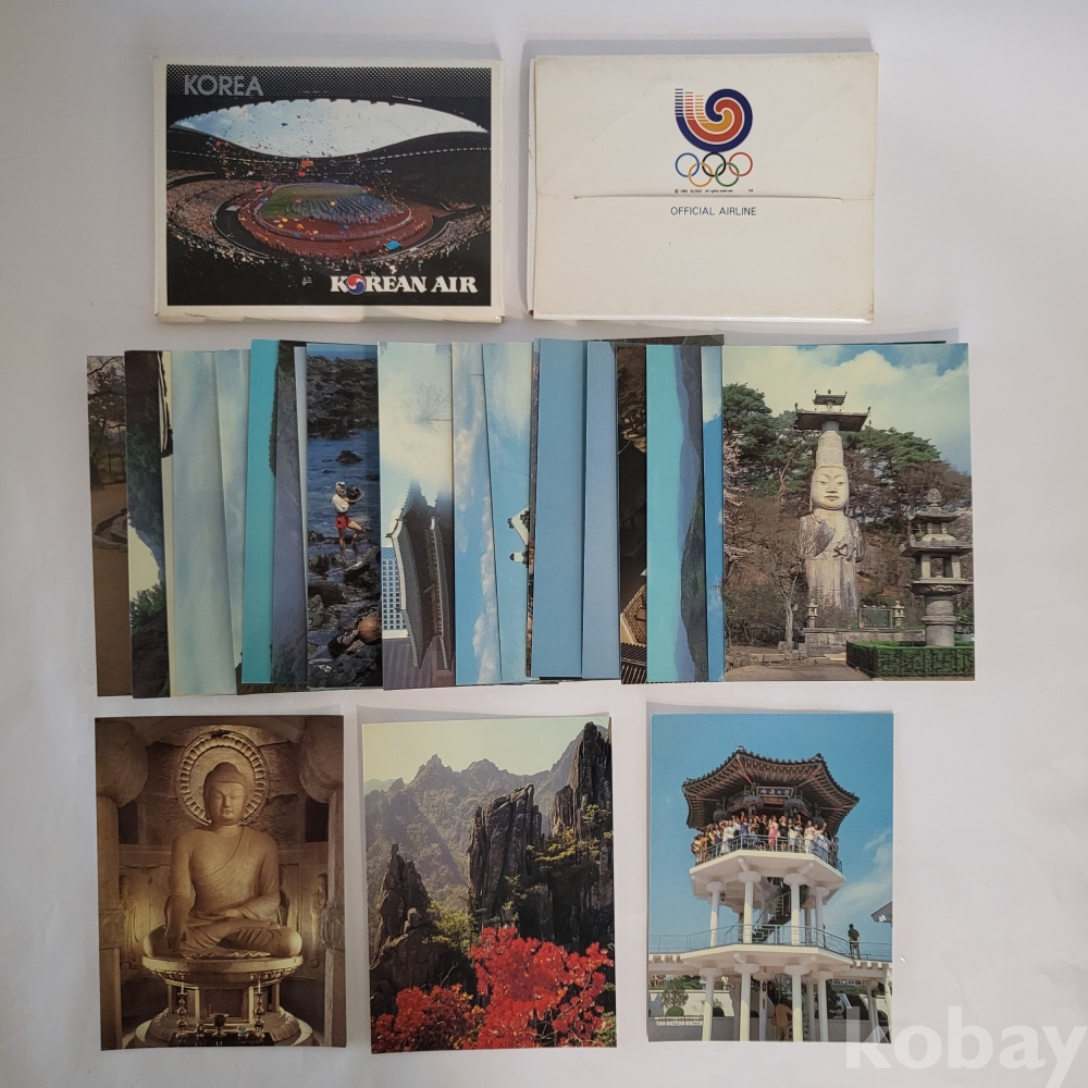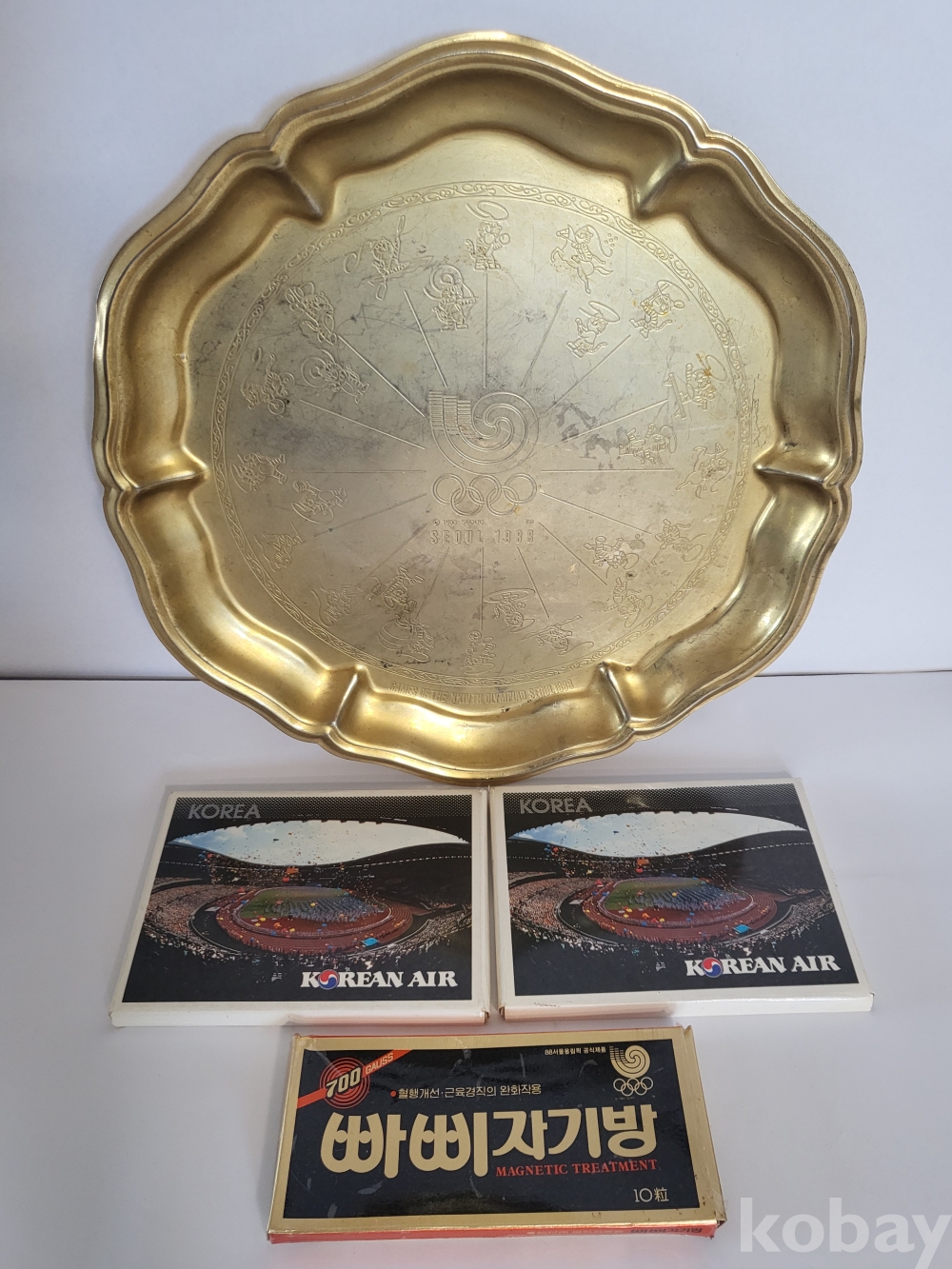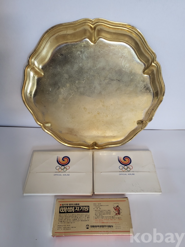 호돌이 금장 쟁반, 대한항공 엽서묶음 2세트, 추억의 미사용 빠삐자기방 등 입니다