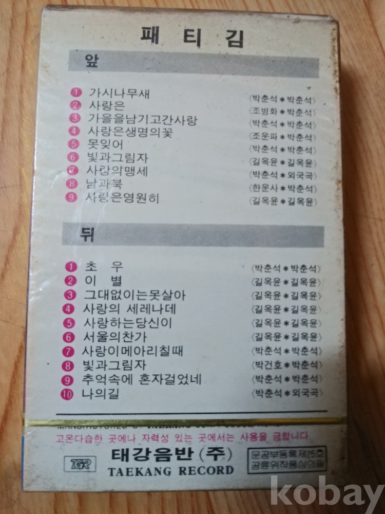 가수패티김 카세트테이프 미개봉비닐도뜯기지않았읍니다