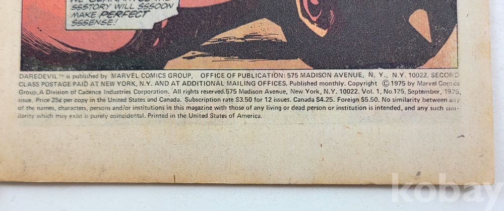 물 품 명 | DAREDEVIL / Vol.1 #125 Sep. 1975 / MARVEL COMICS GROUP / 미국 |