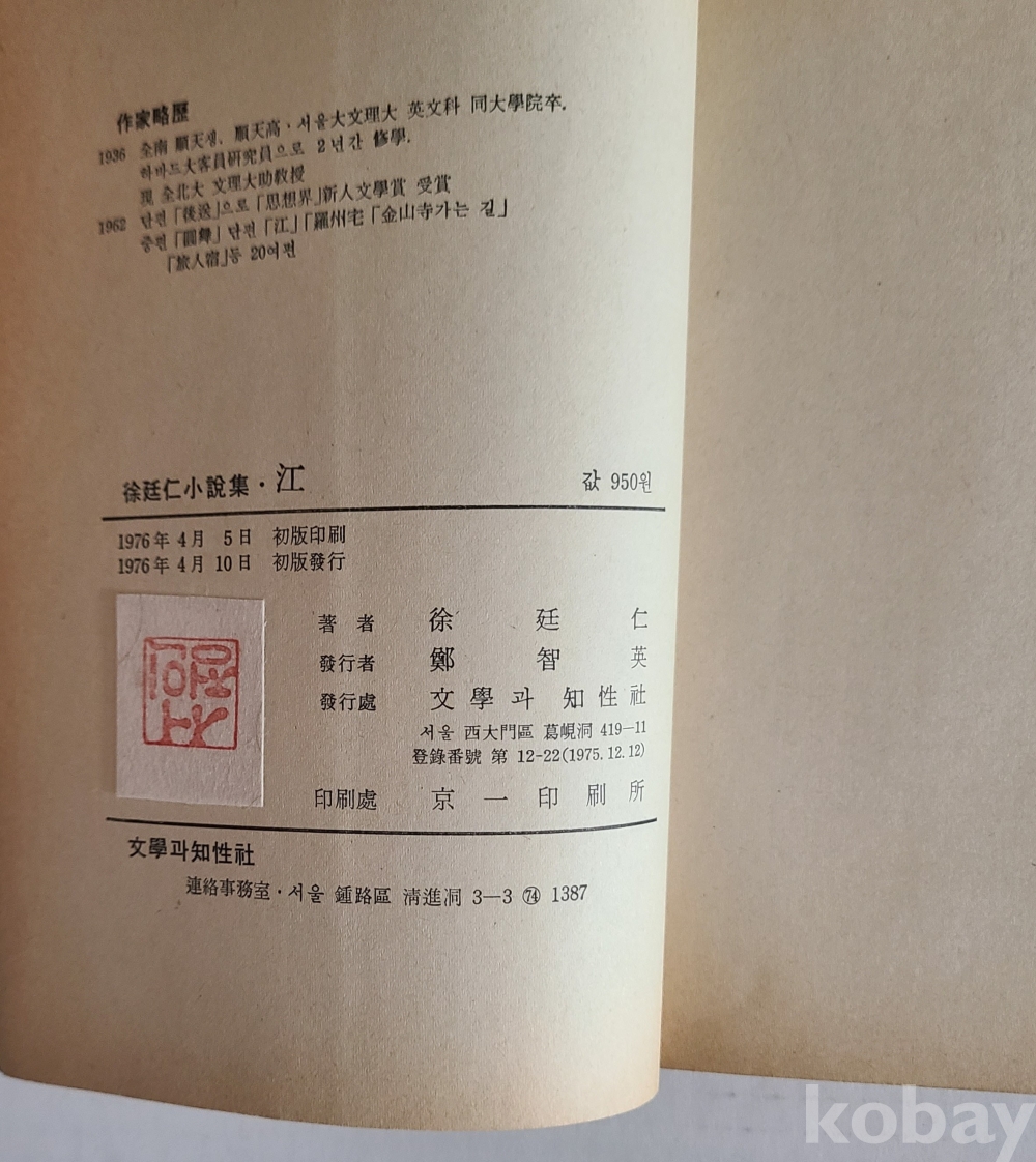 1976년 4월 10일 문학과 지성사 발행