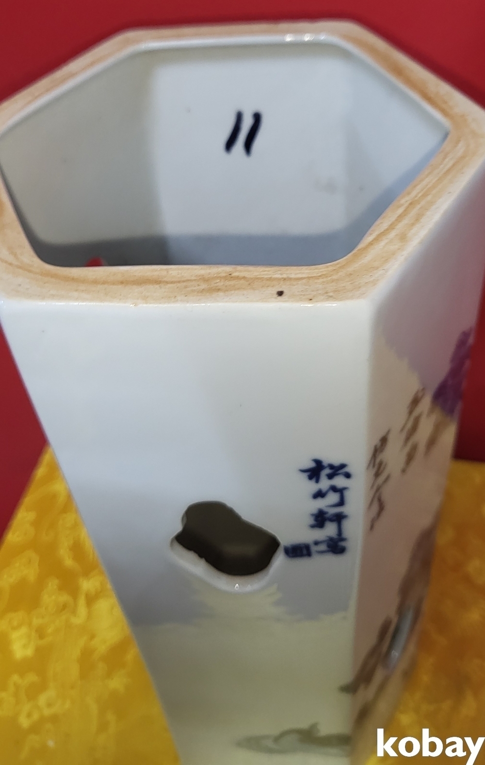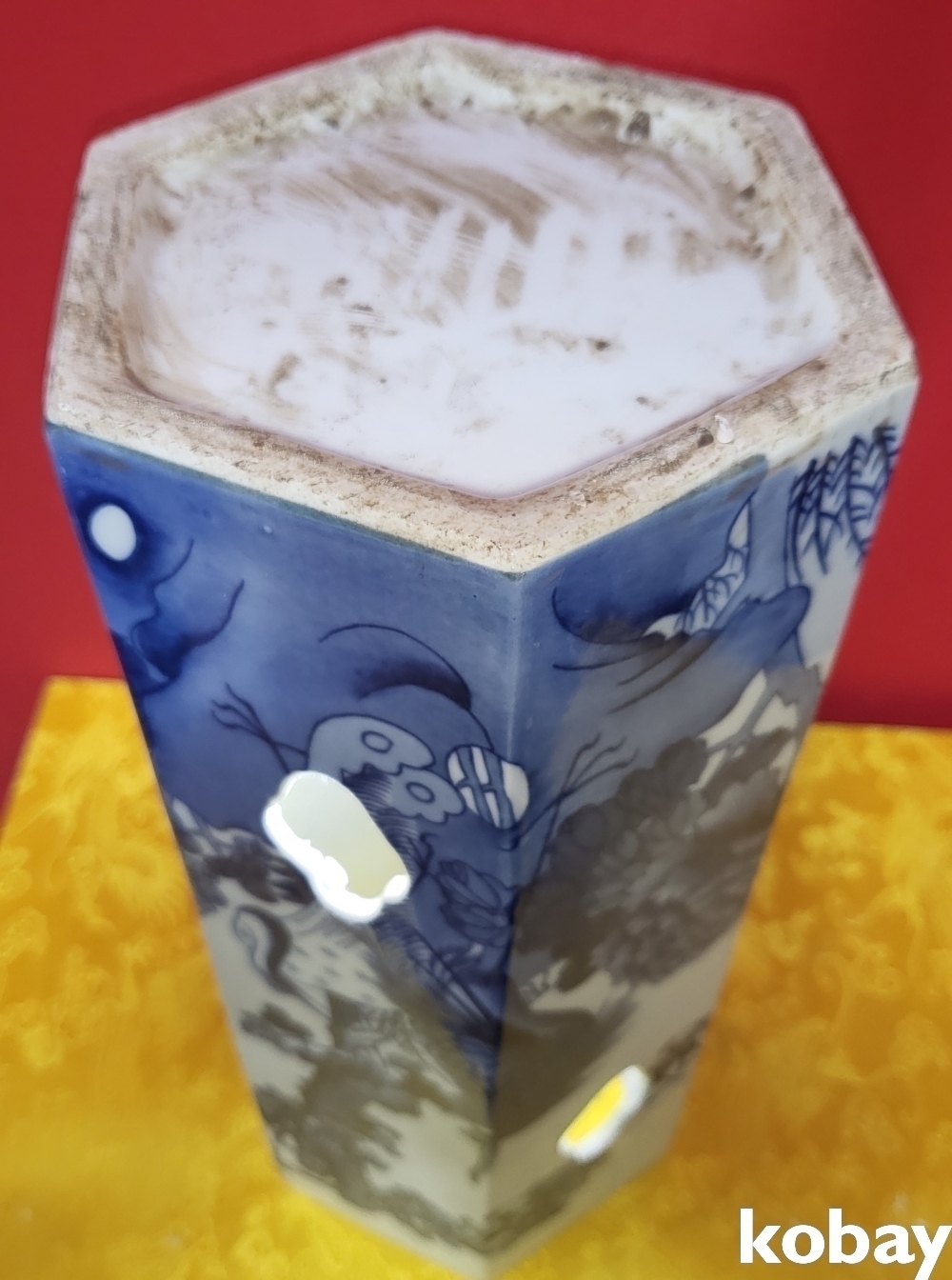 청화백자 화조문 투각 지통(紙桶)입니다,